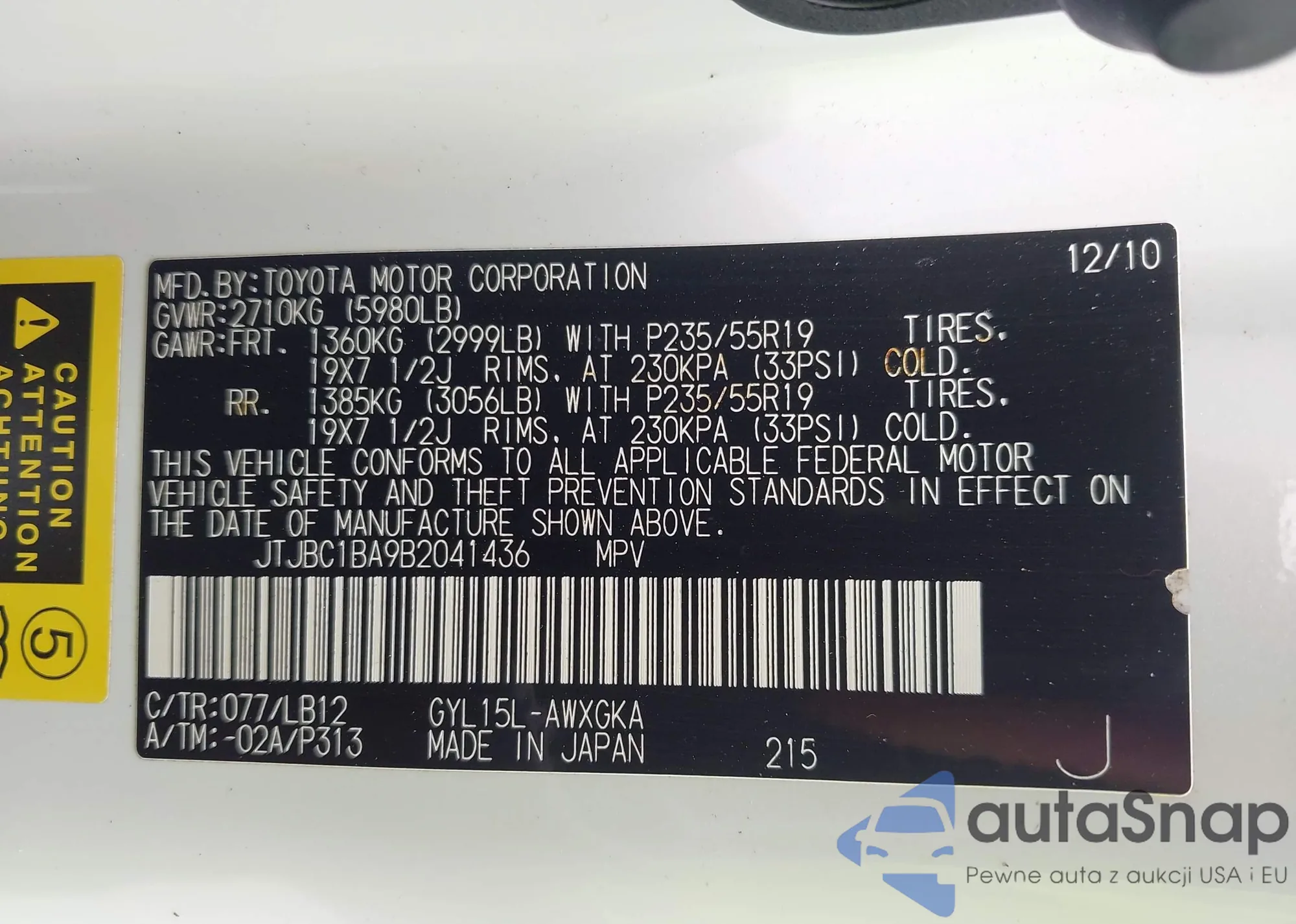 VIN: JTJBC1BA9B2041436