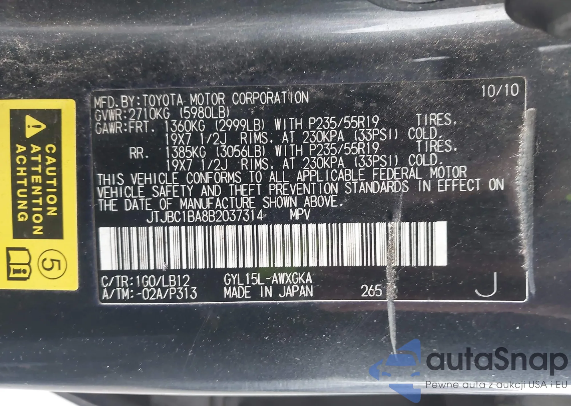 VIN: JTJBC1BA8B2037314