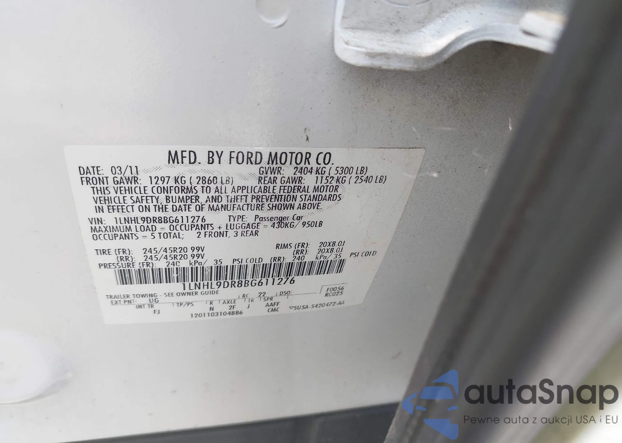 The car Lincoln MKS 2011 (VIN 1LNHL9DR8BG611276) has not been auctioned before. The documents are clean, and the mileage matches or is below the market average. Sold by an insurance company – we recommend purchase. Delivery to the port will take approx. 6–8 weeks.