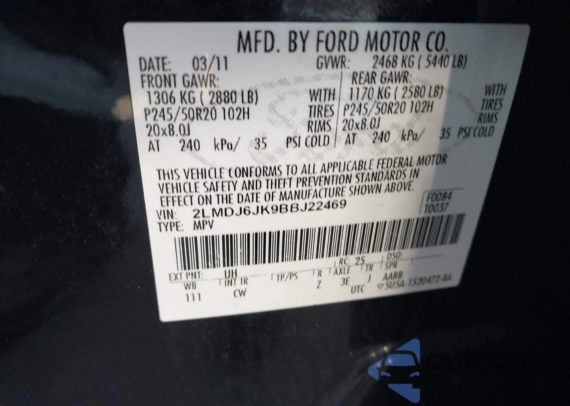 VIN: 2LMDJ6JK9BBJ22469