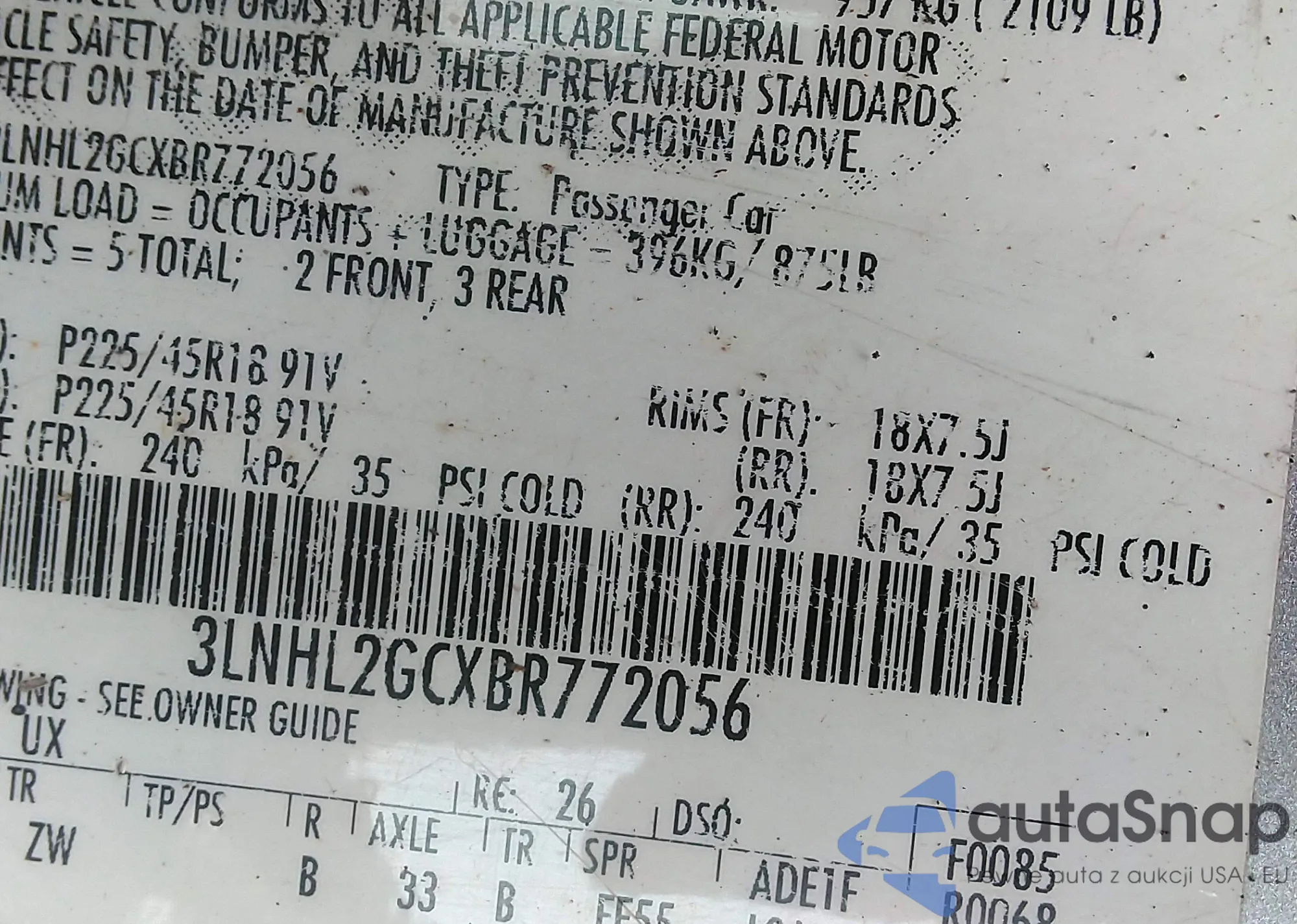 VIN: 3LNHL2GCXBR772056