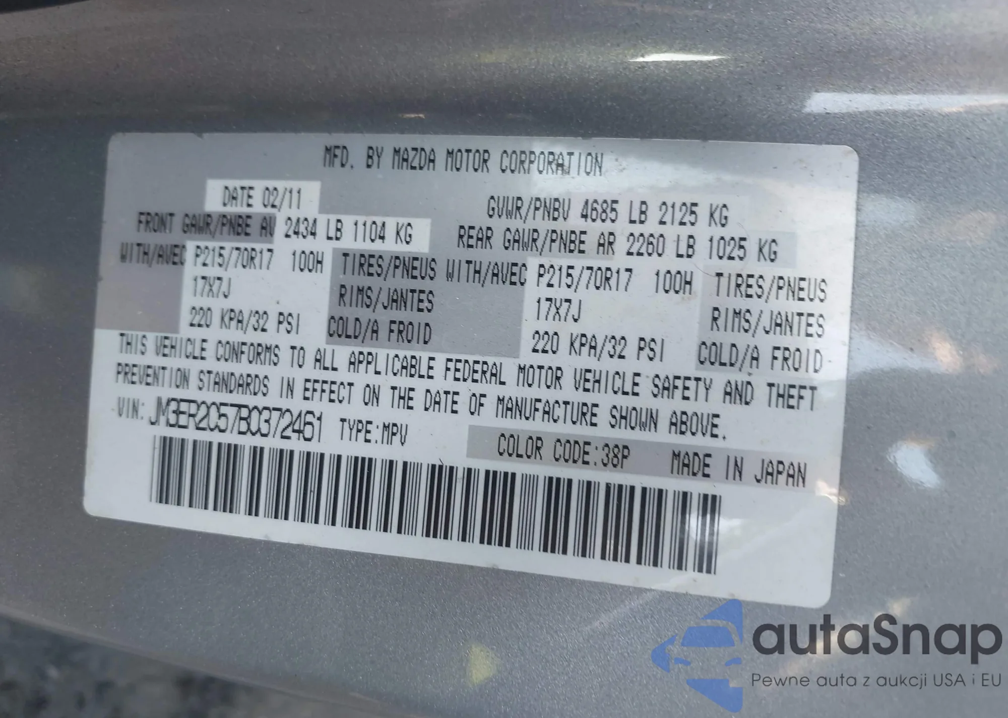 VIN: JM3ER2C57B0372461