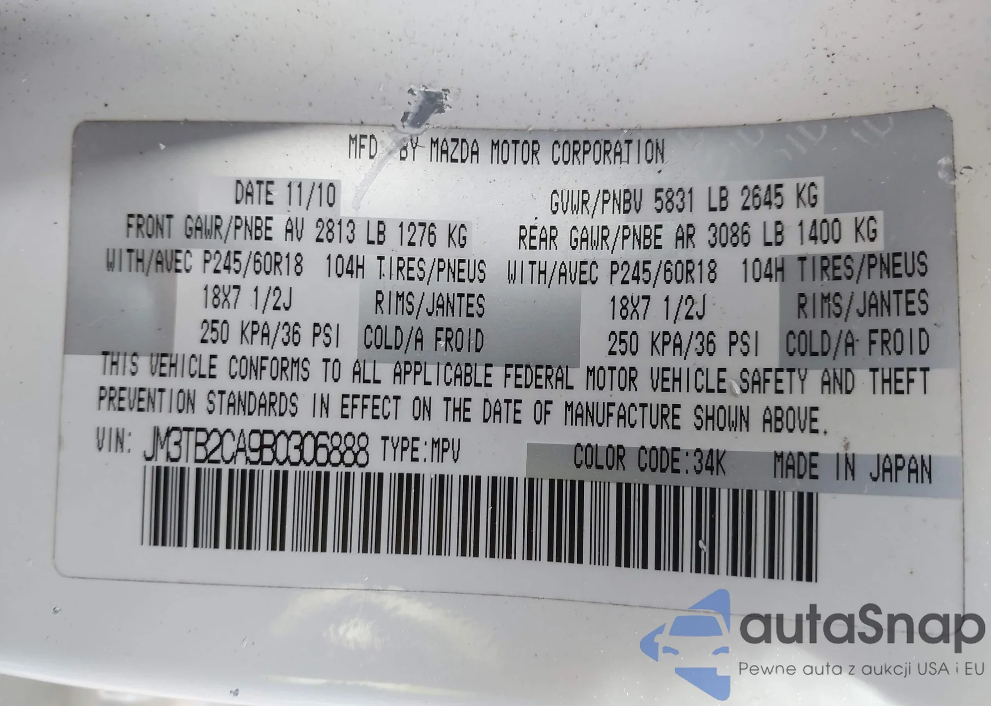 • VIN: JM3TB2CA9B0306888