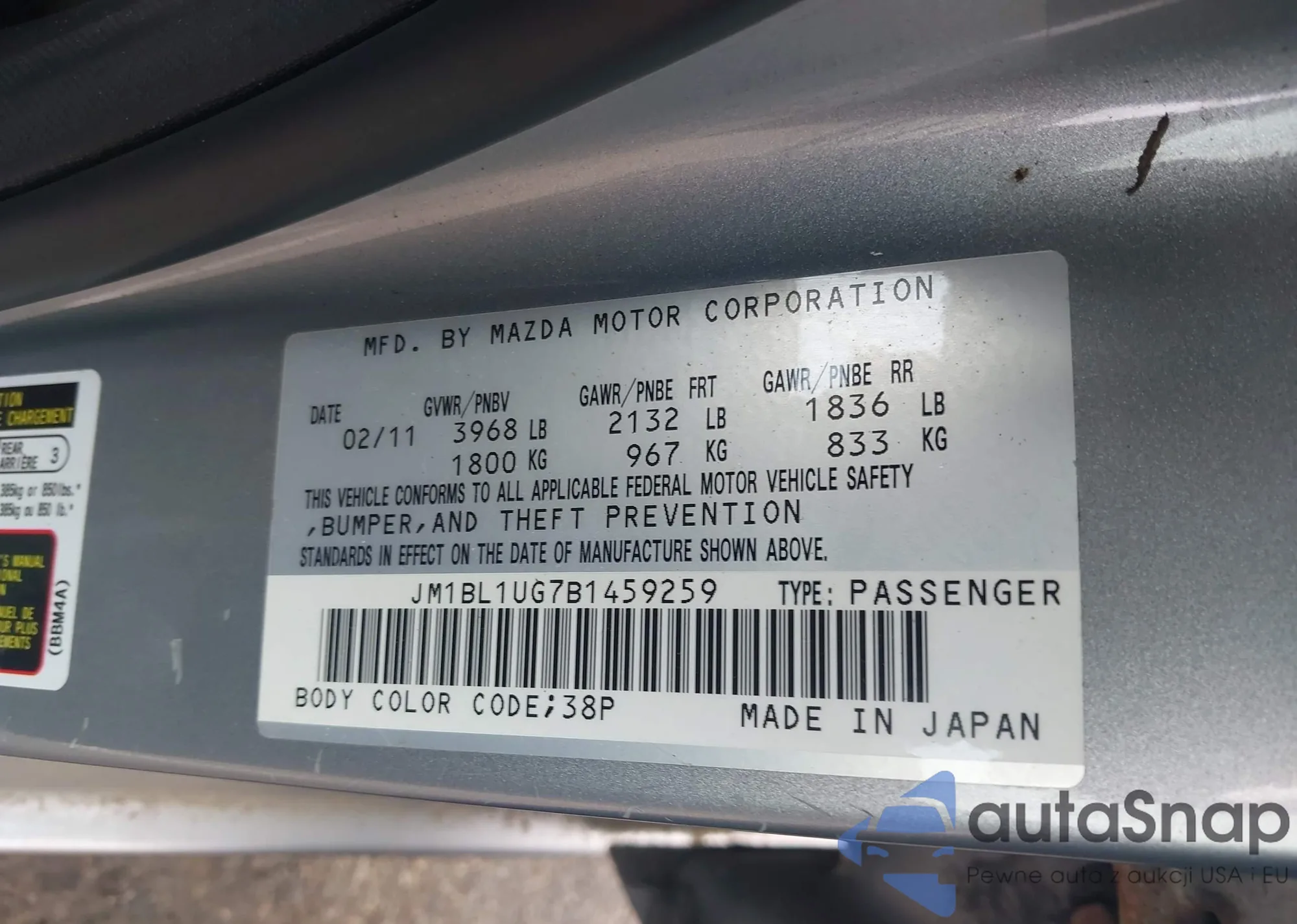 VIN: JM1BL1UG7B1459259