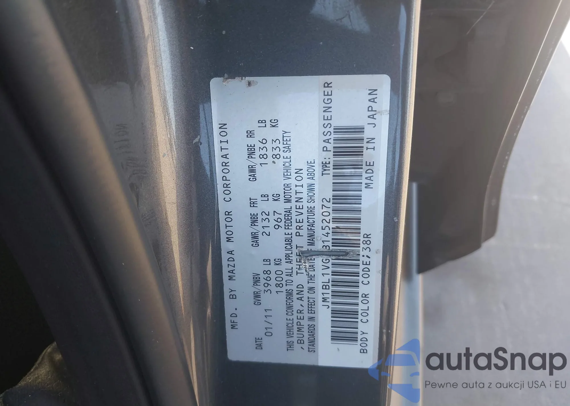 VIN: JM1BL1VG2B1452072
