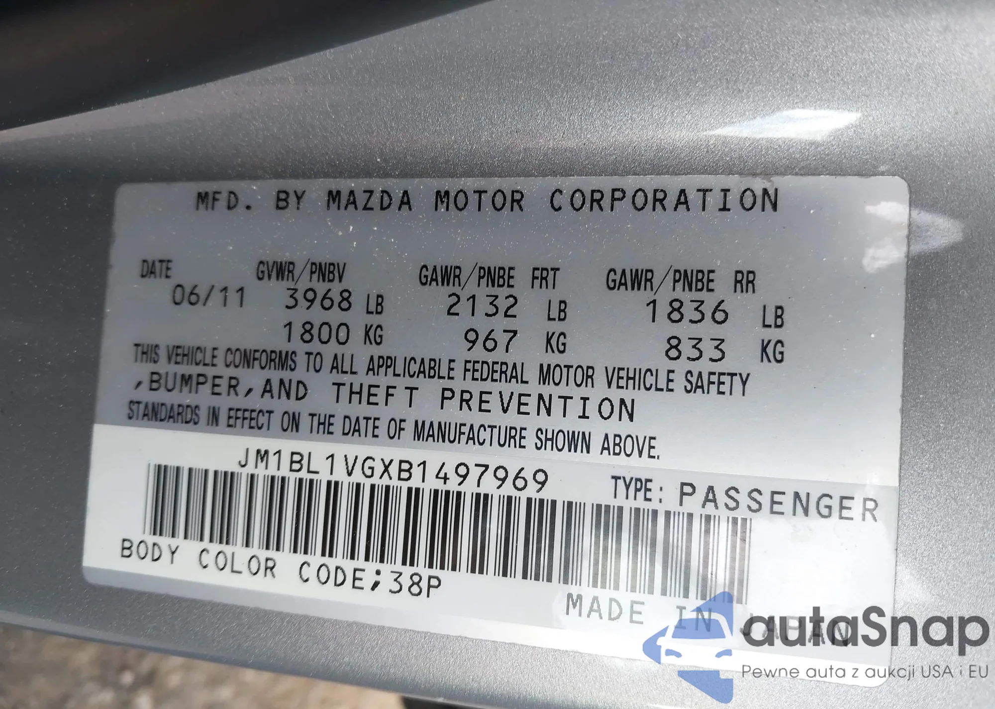 VIN: JM1BL1VGXB1497969