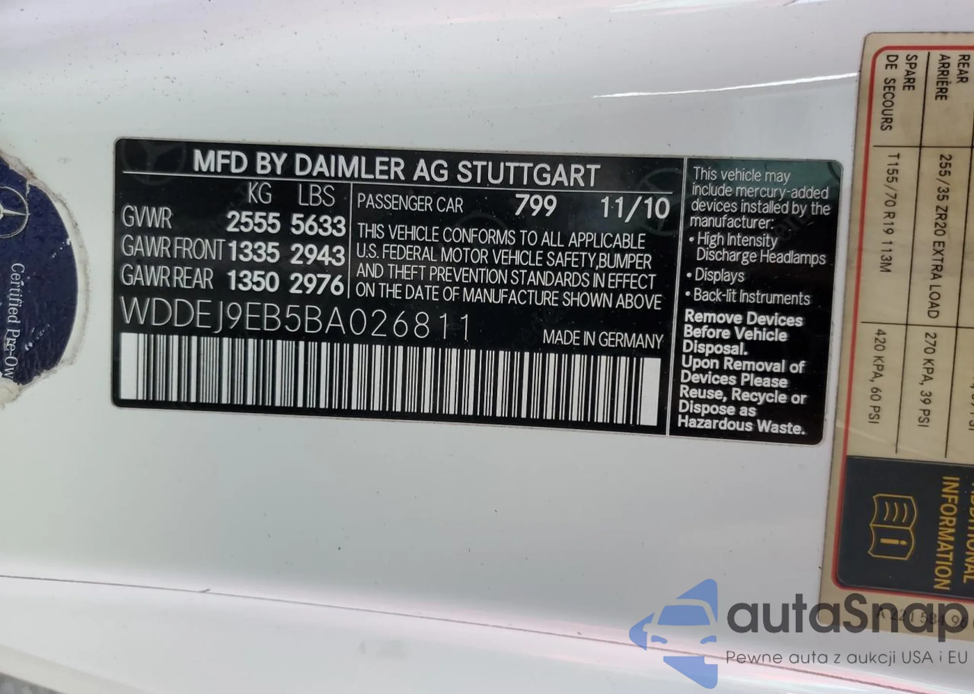 VIN: WDDEJ9EB5BA026811