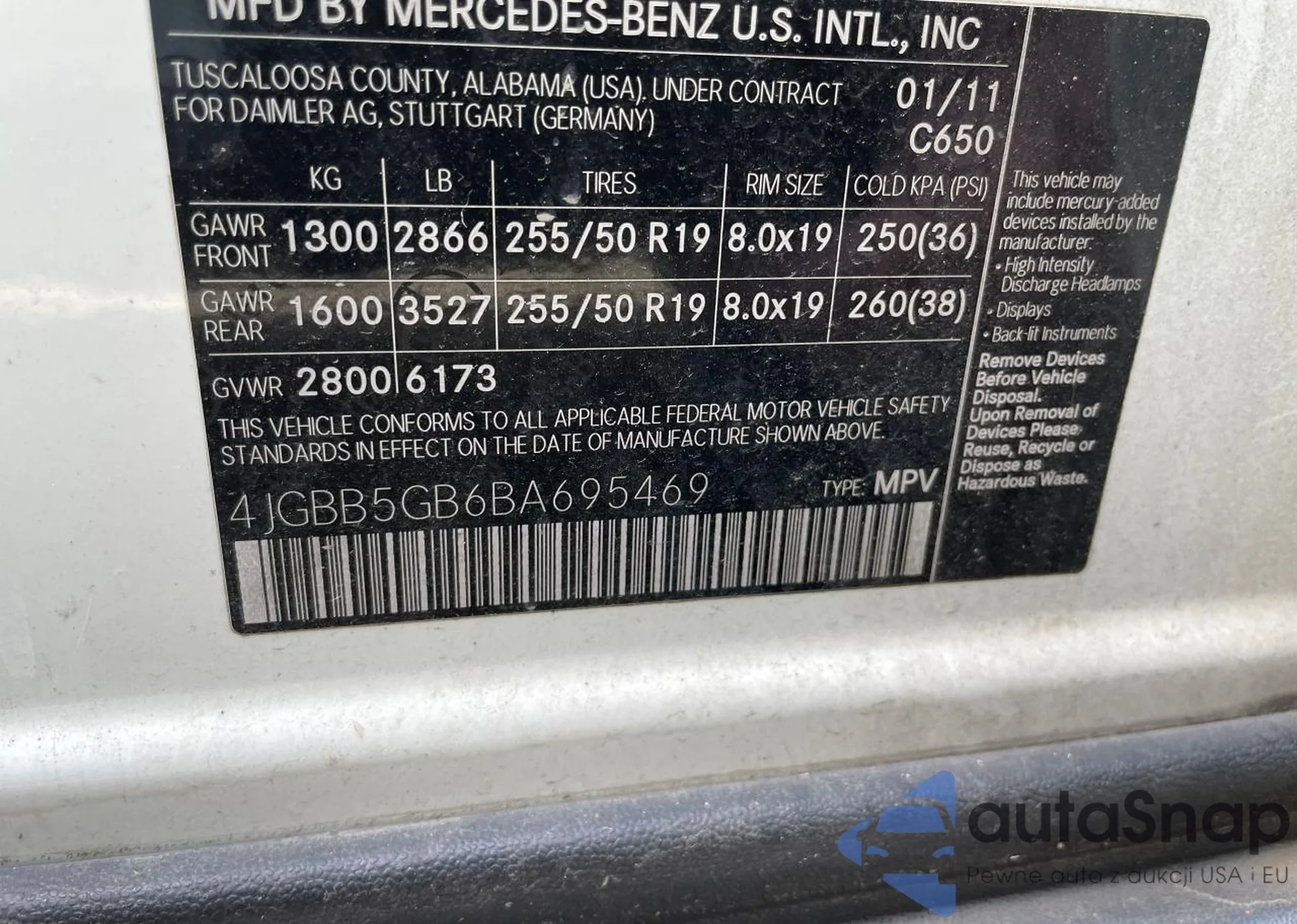 VIN: 4JGBB5GB6BA695469