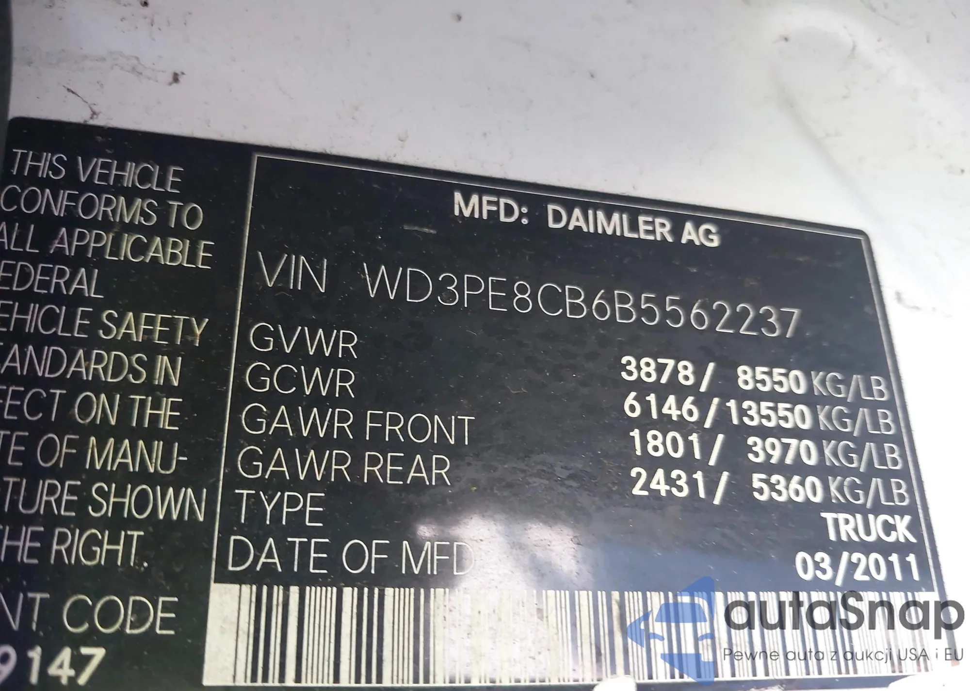 The car Mercedes-Benz Sprinter 2011 (VIN WD3PE8CB6B5562237) is sold by an unverified seller. We recommend checking the Carfax report and confirming registration possibilities before purchase.