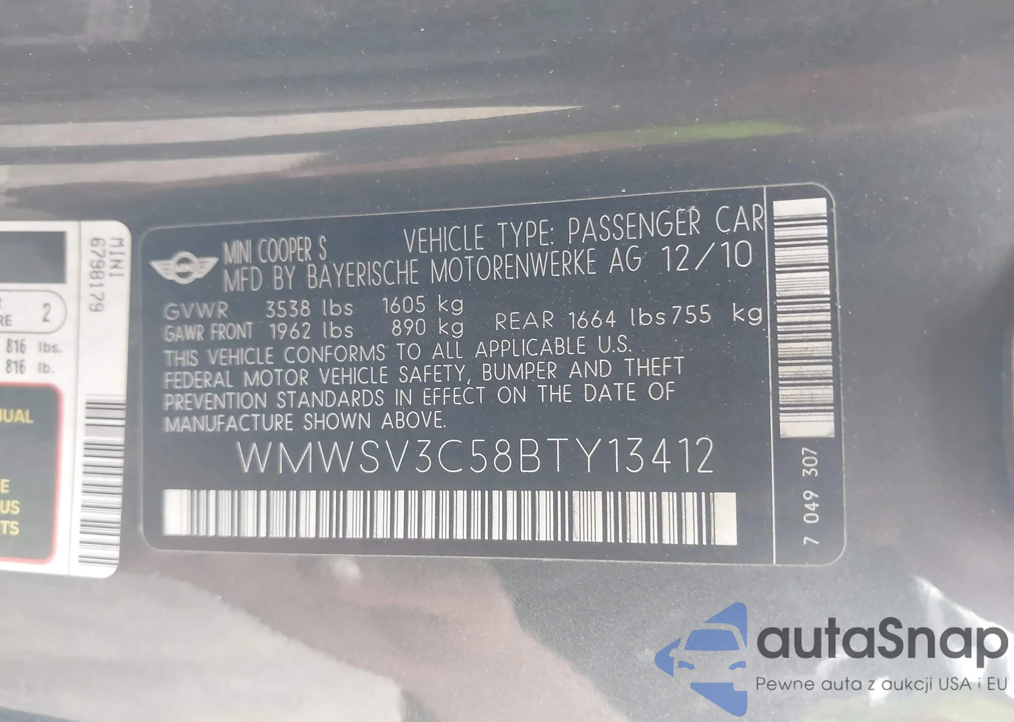 VIN: WMWSV3C58BTY13412