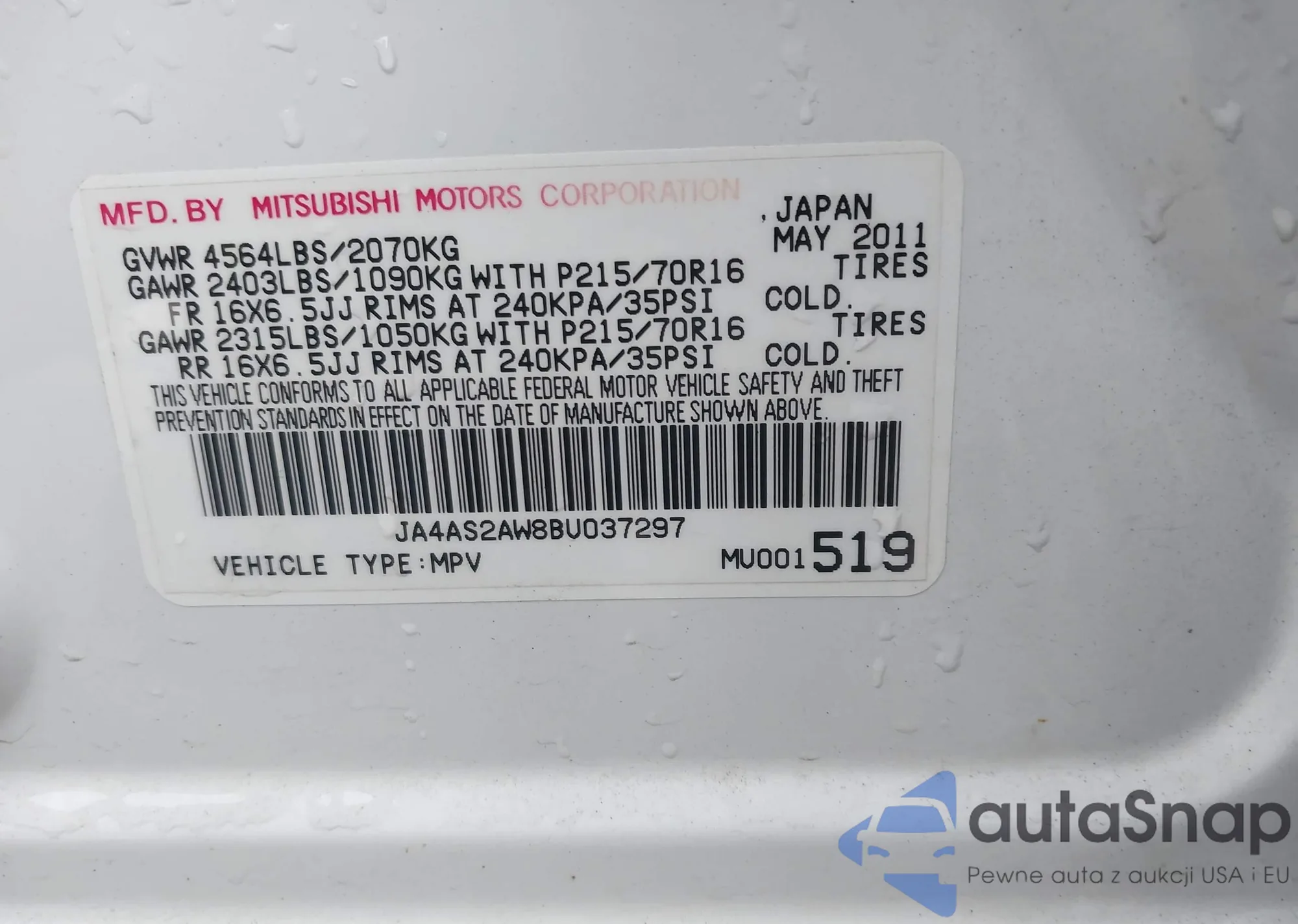 VIN: JA4AS2AW8BU037297