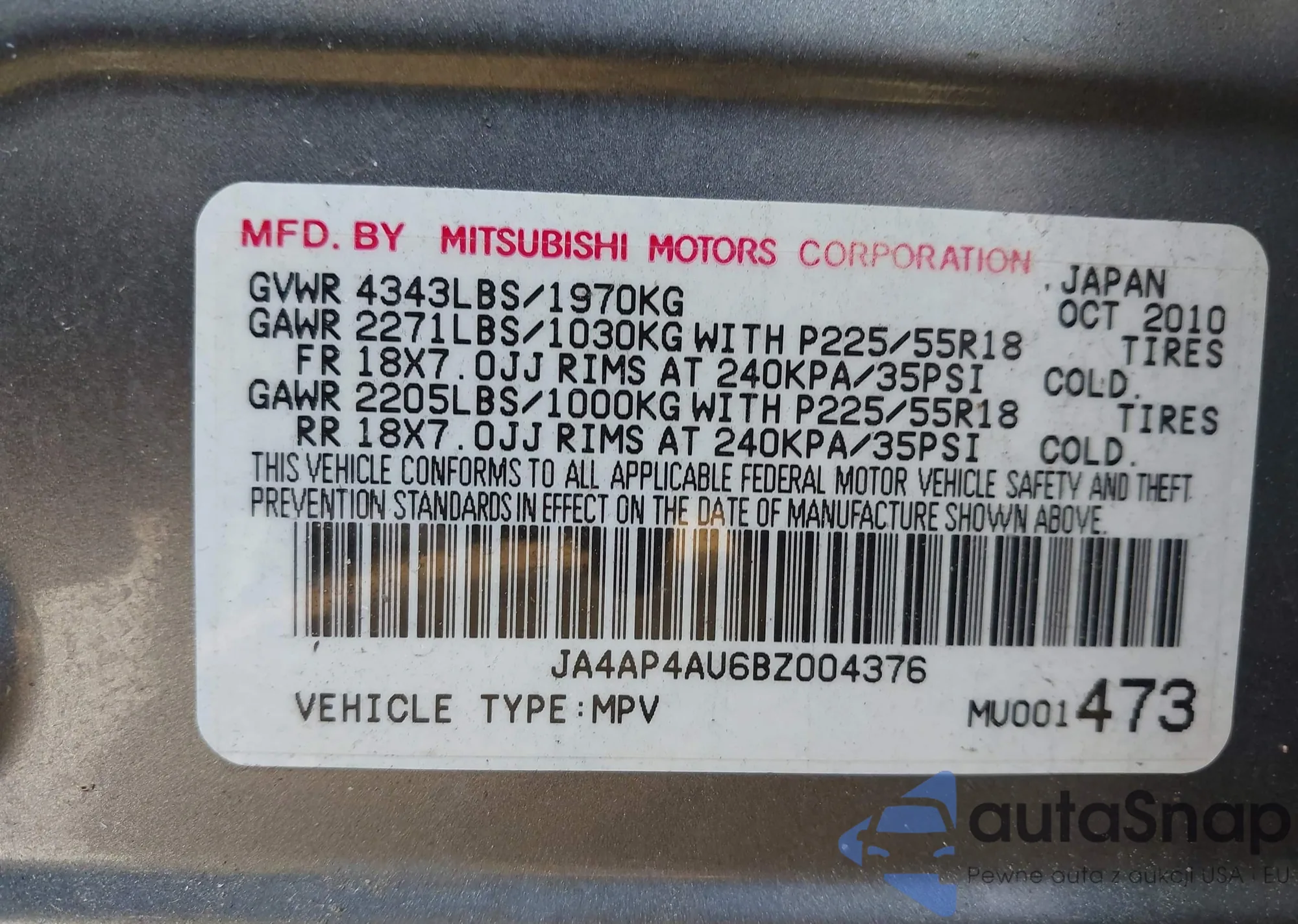 VIN: JA4AP4AU6BZ004376