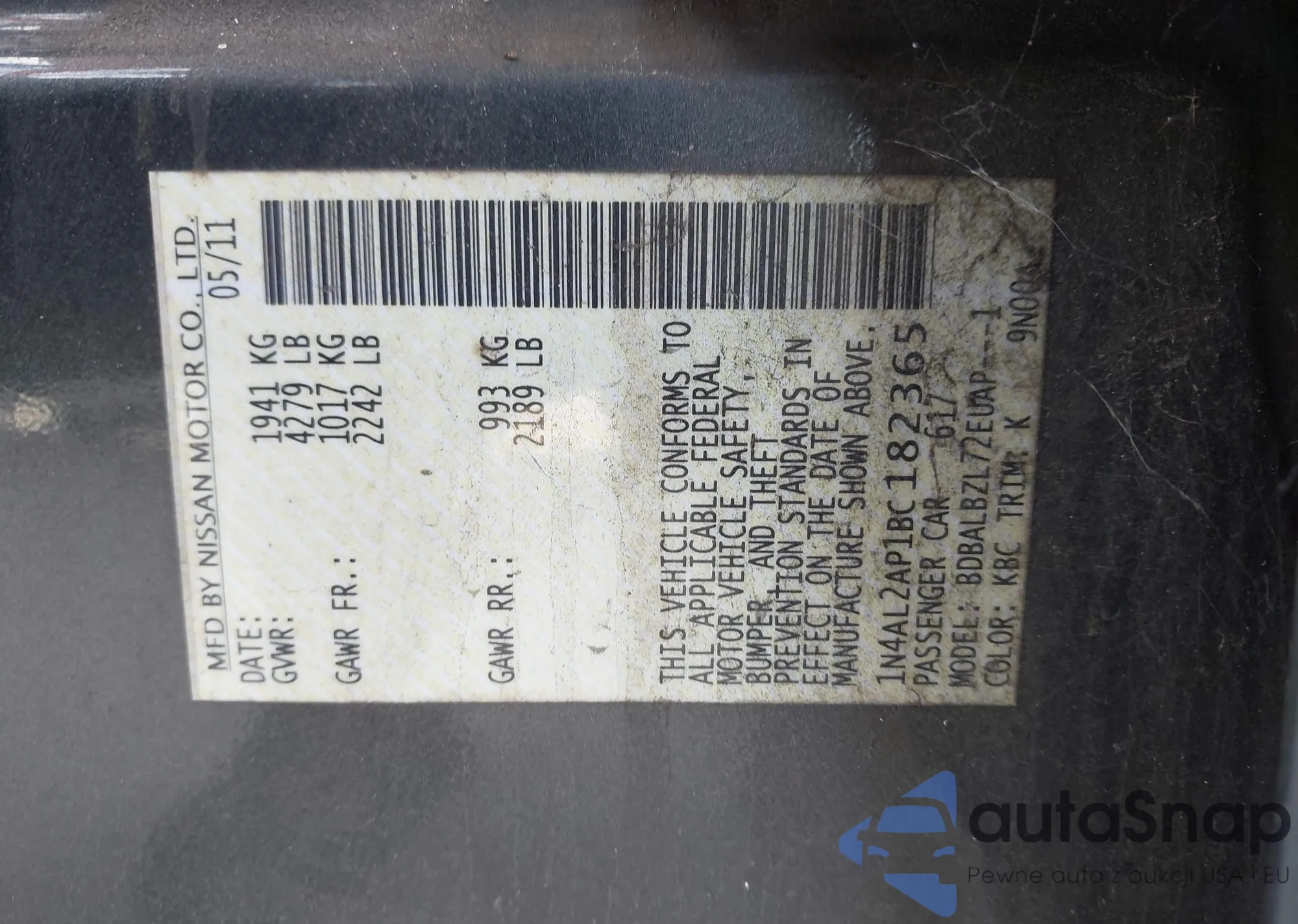 VIN: 1N4AL2AP1BC182365