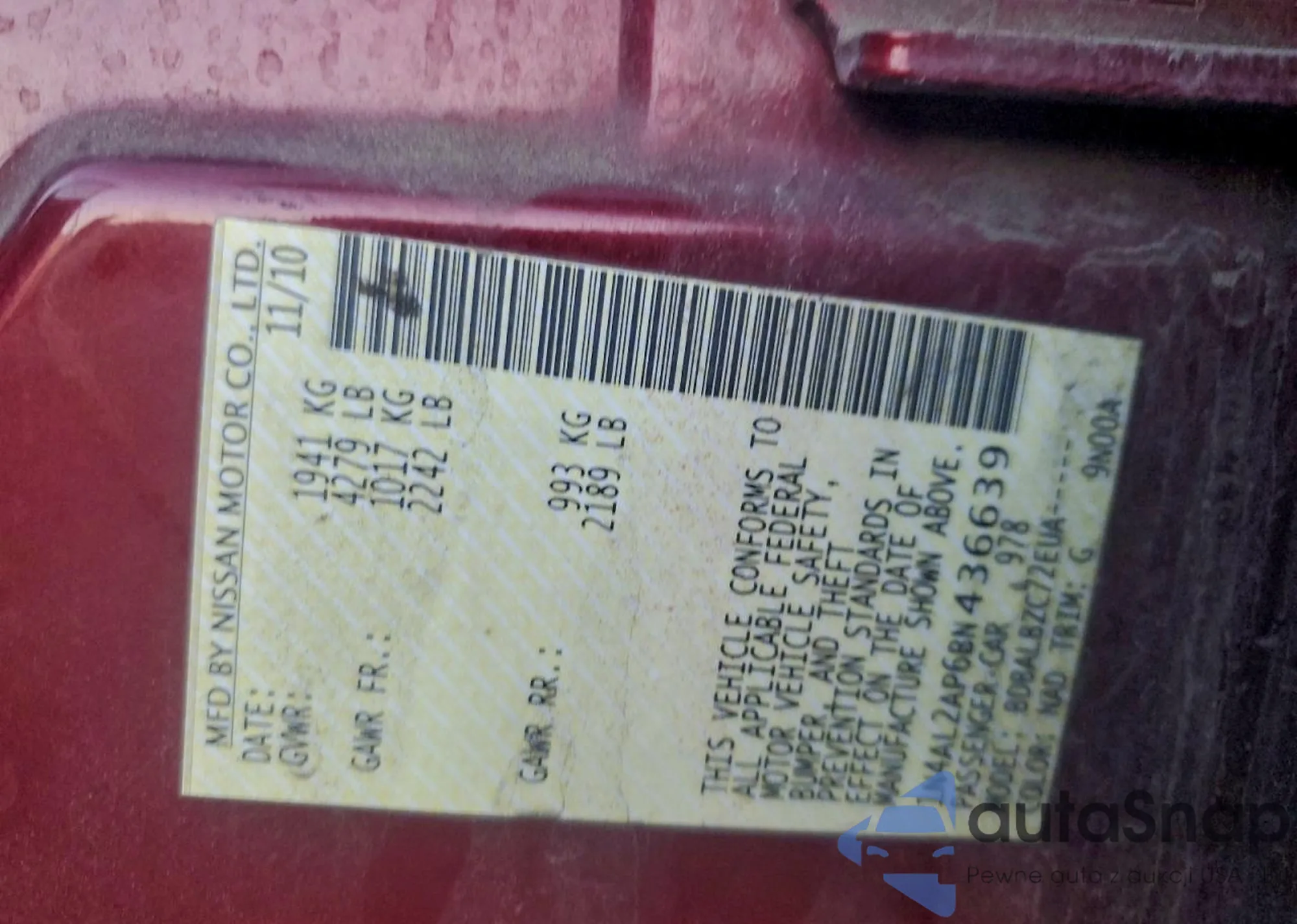 The car Nissan Altima 2011 (VIN 1N4AL2AP6BN436639) is sold by an unverified seller. We recommend checking the Carfax report and confirming registration possibilities before purchase.