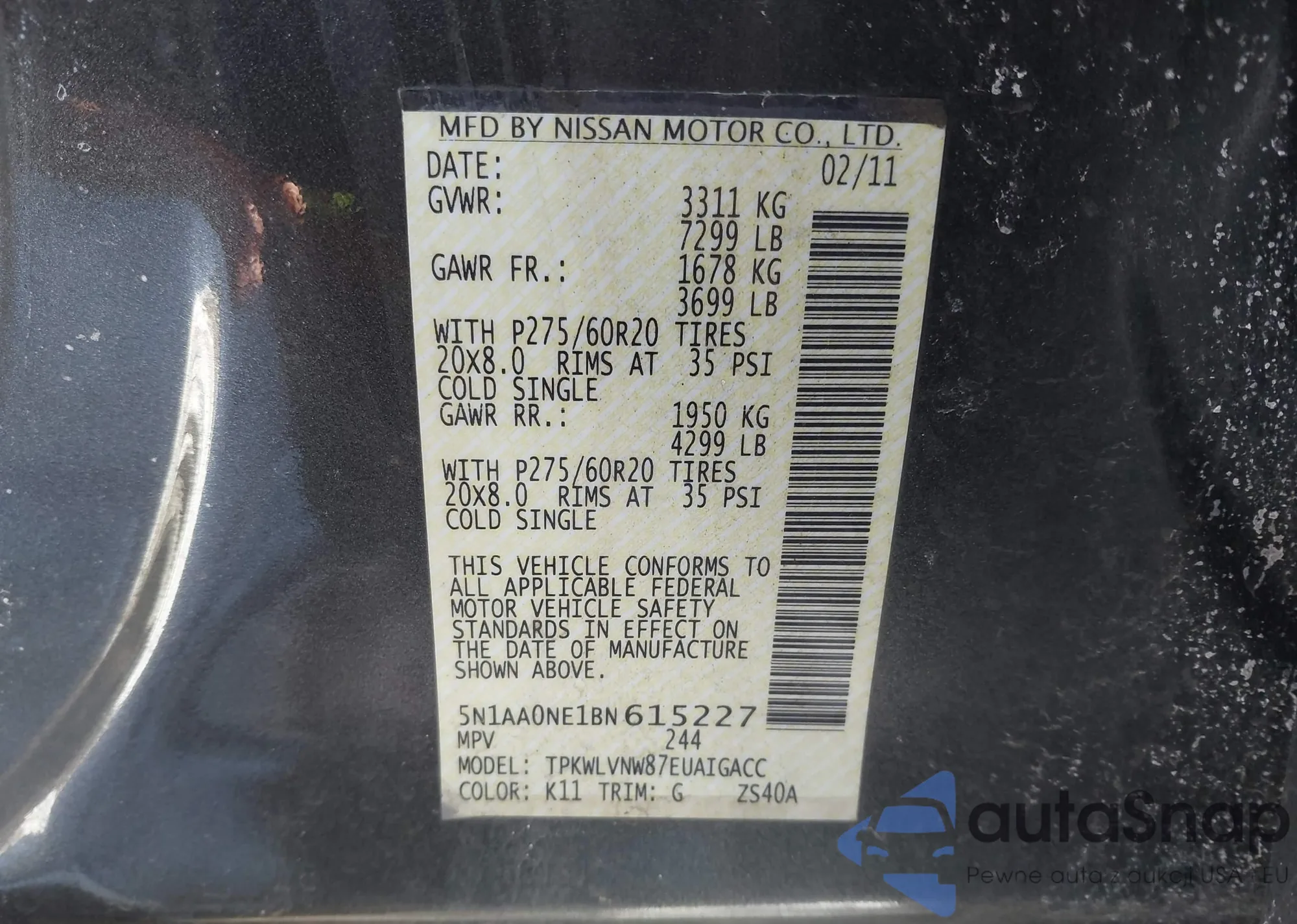 • Make: 2011 Nissan Armada Pl...