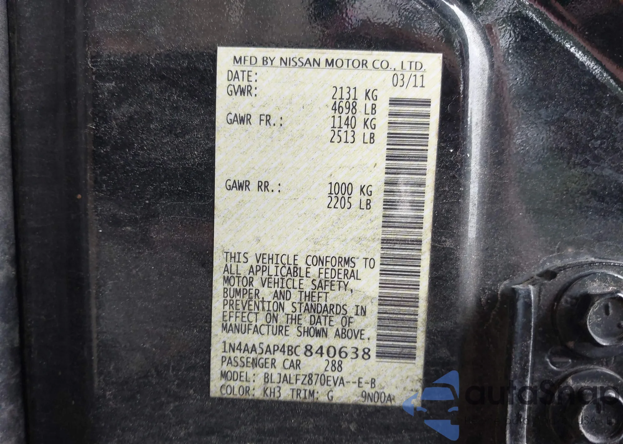VIN: 1N4AA5AP4BC840638
