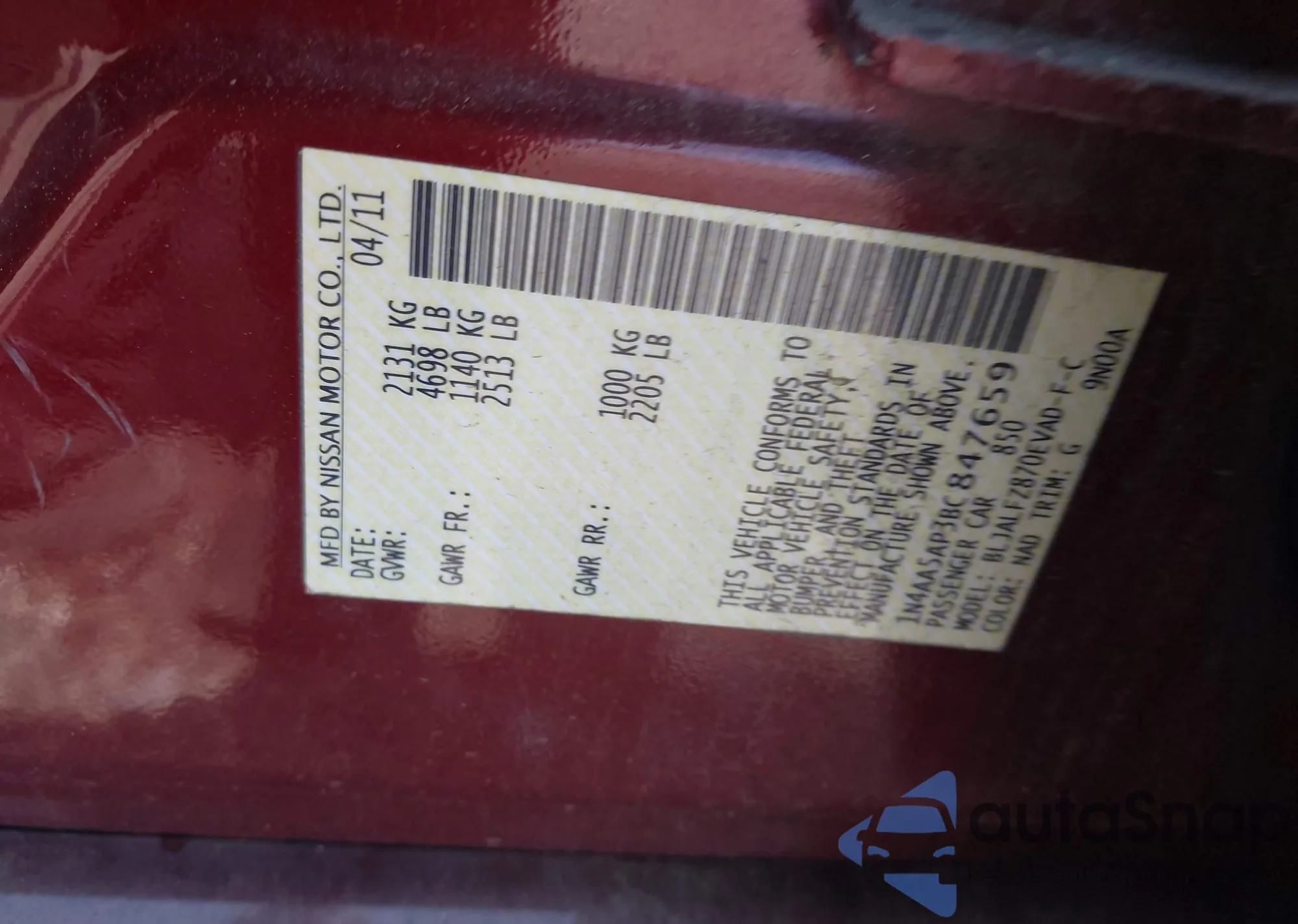 VIN: 1N4AA5AP3BC847659