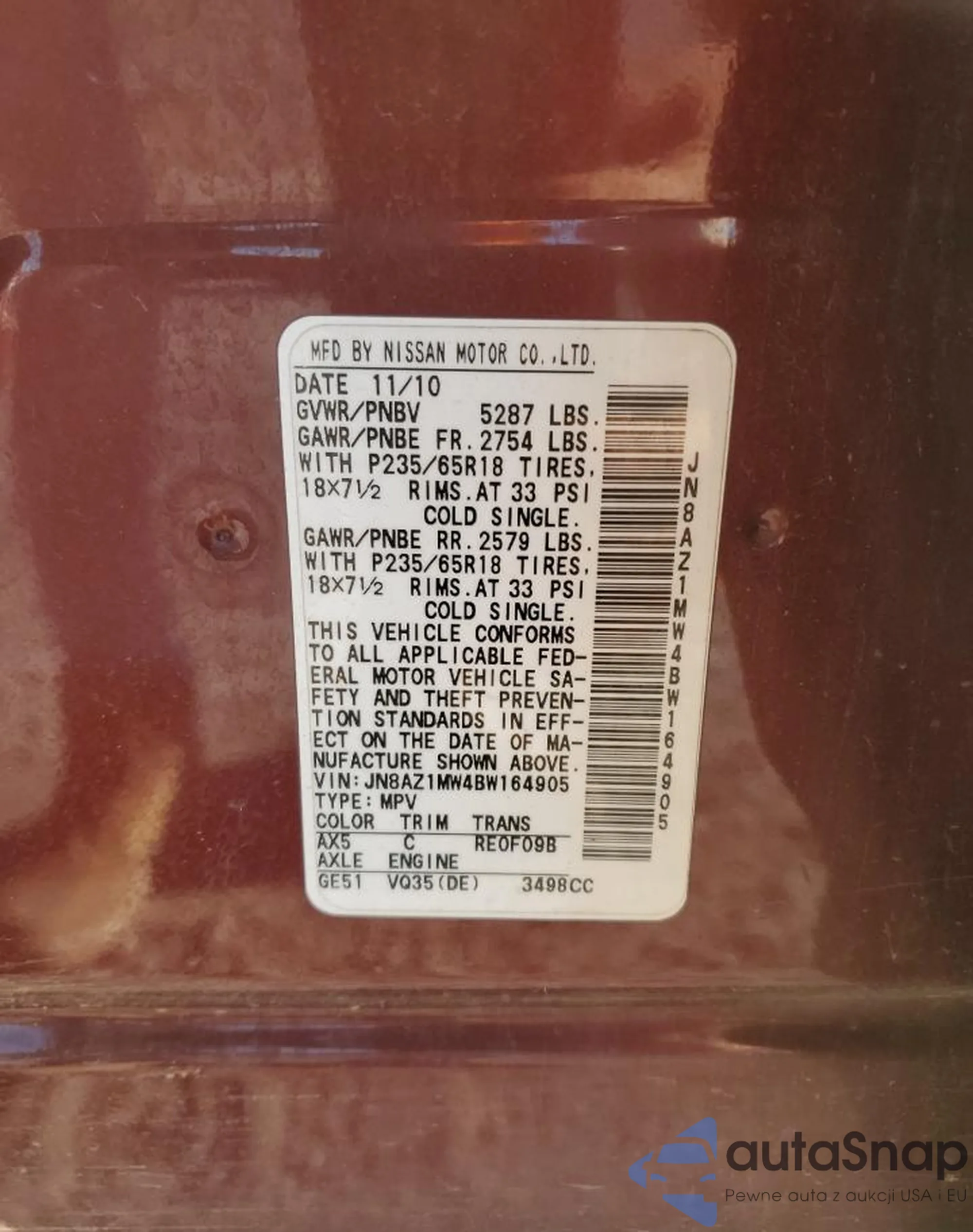 VIN: JN8AZ1MW4BW164905