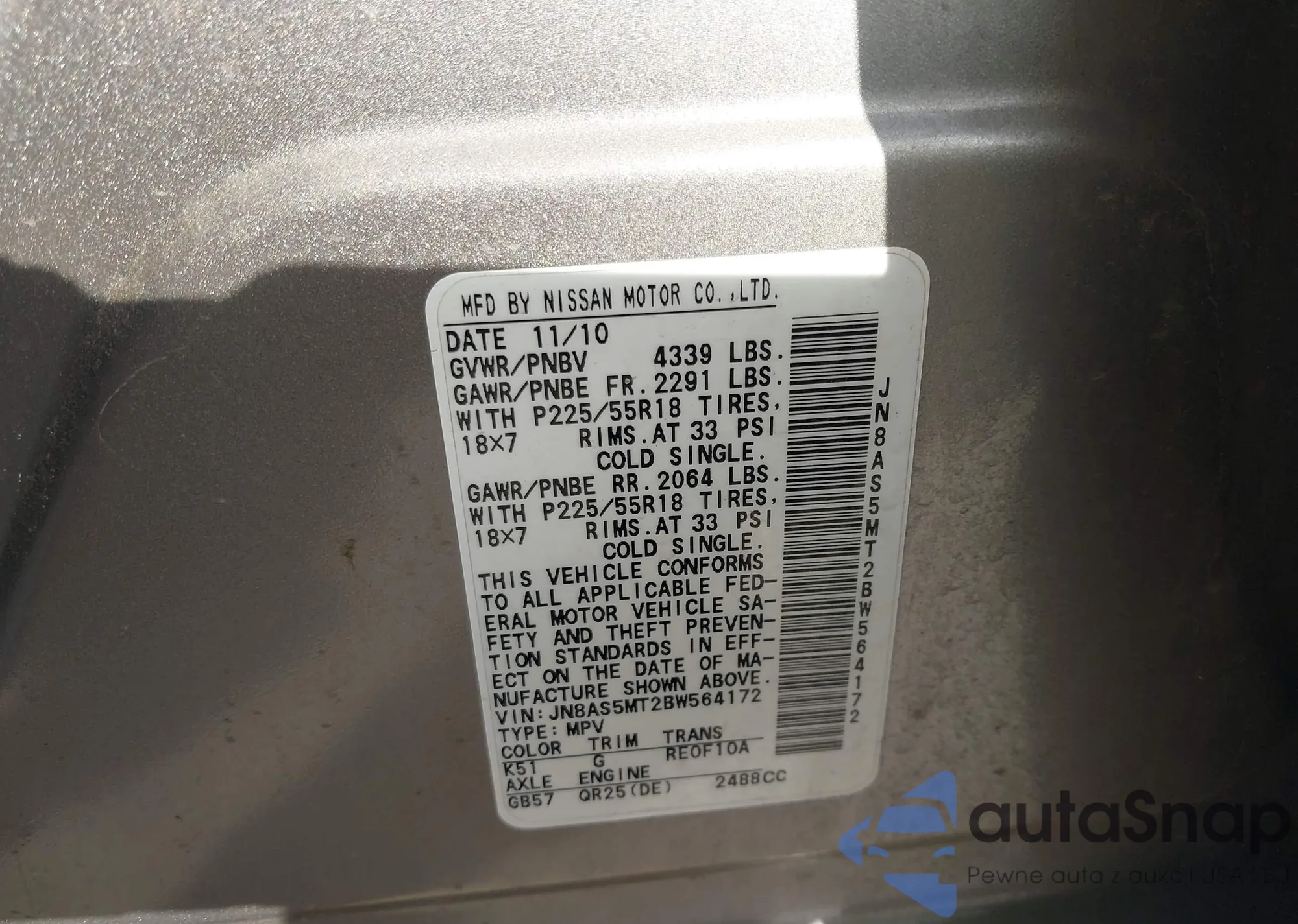 VIN: JN8AS5MT2BW564172
