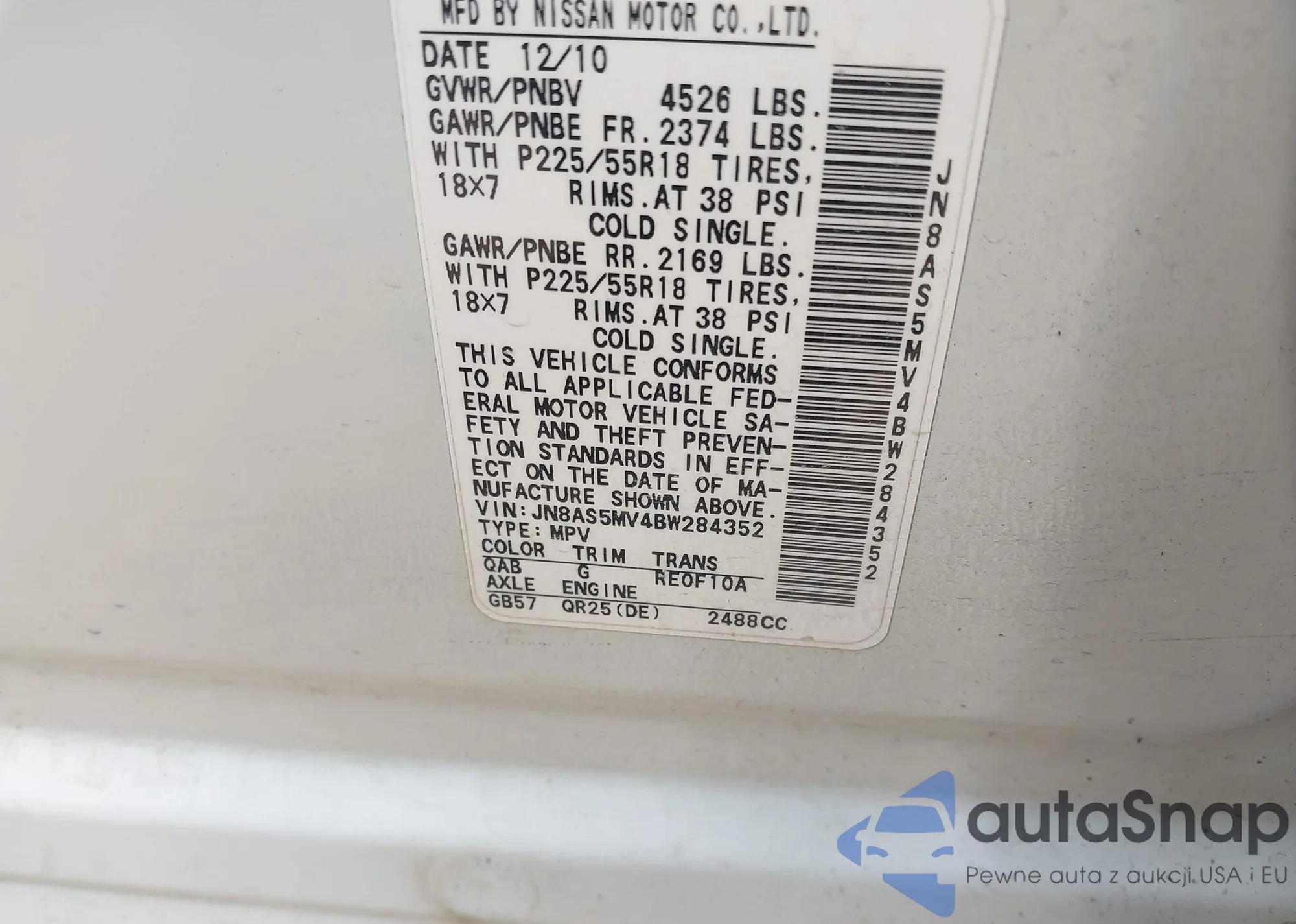 VIN: JN8AS5MV4BW284352