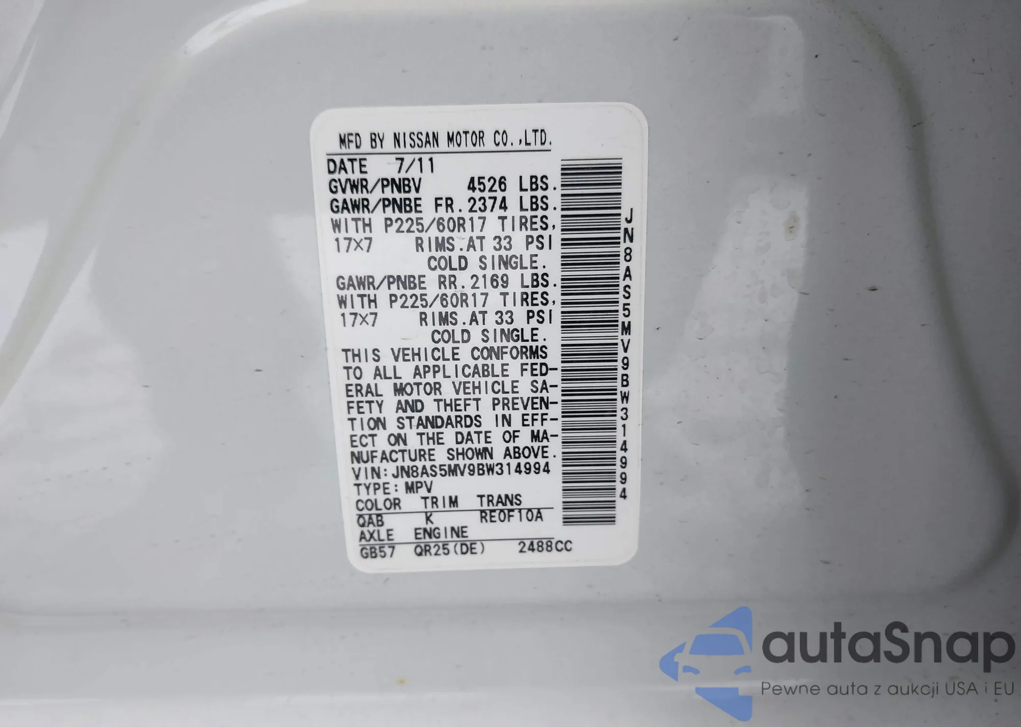 VIN: JN8AS5MV9BW314994