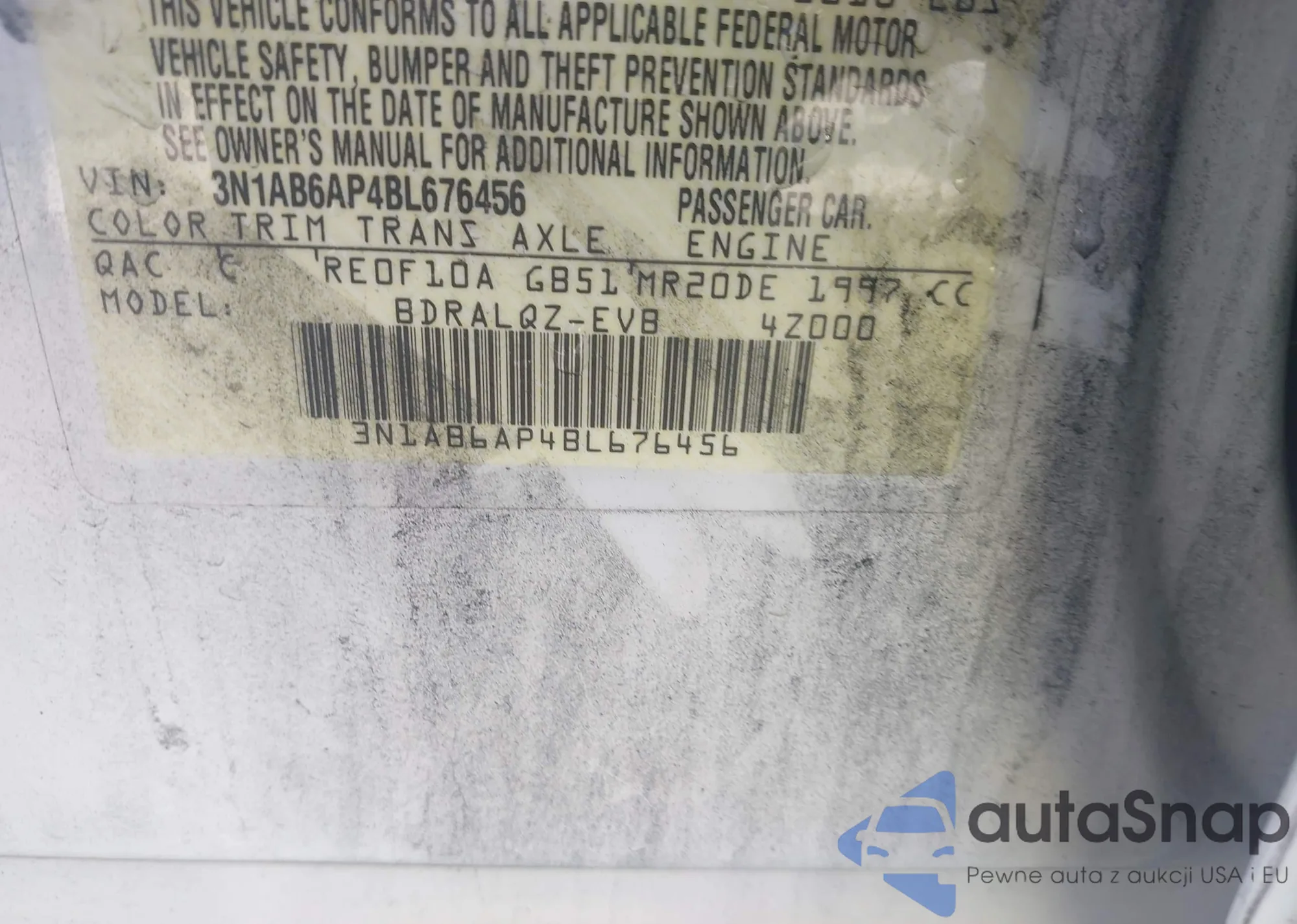 • VIN: 3N1AB6AP4BL676456
