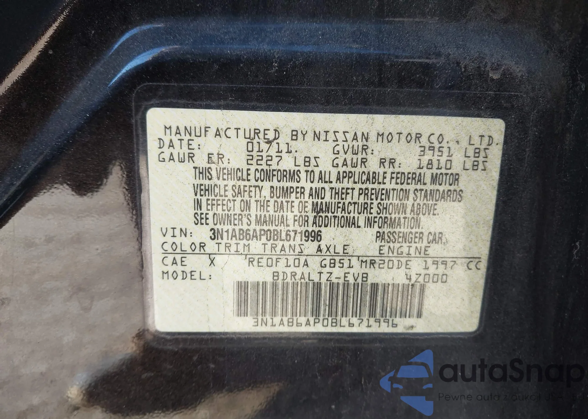 VIN: 3N1AB6AP0BL671996