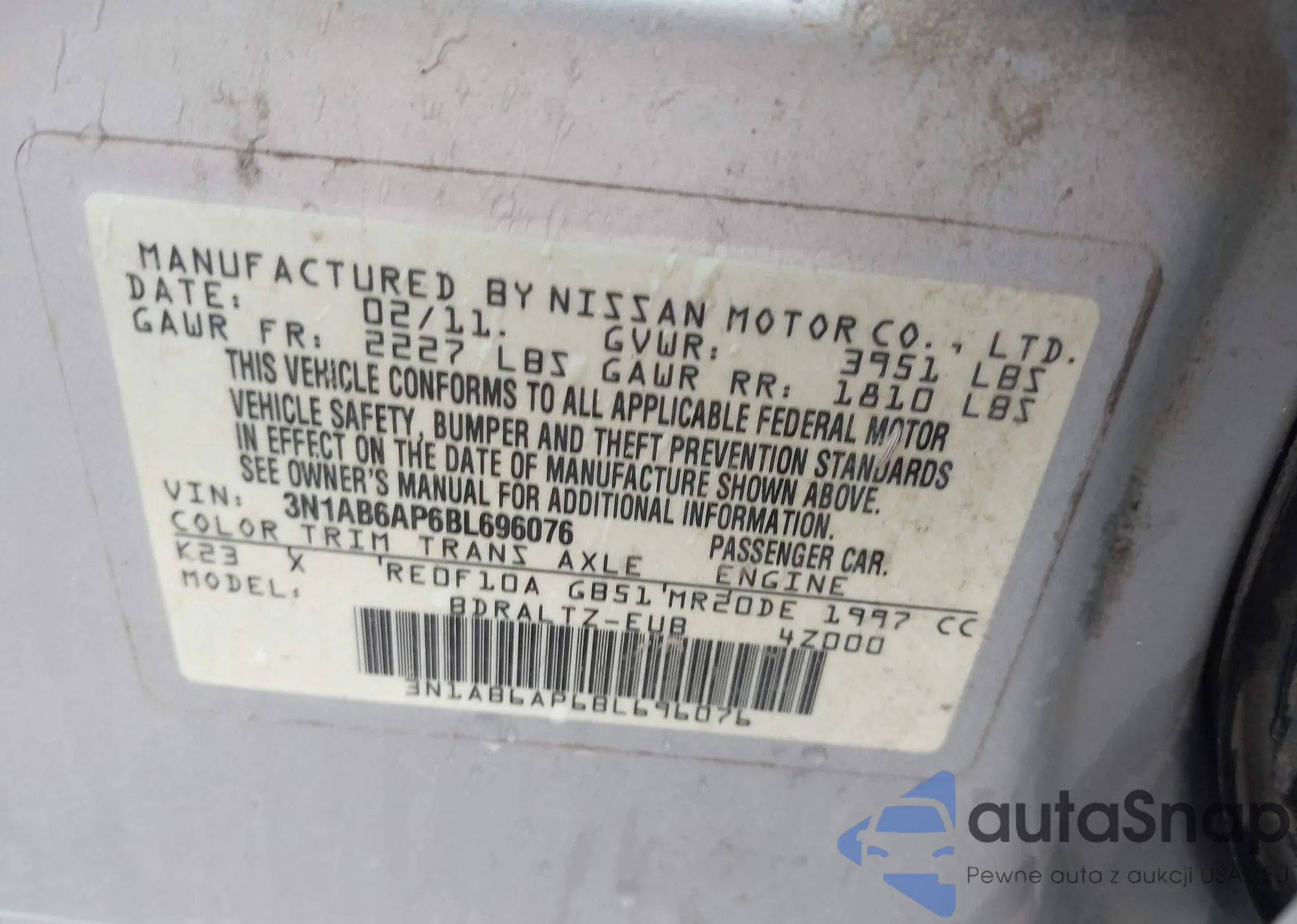 VIN: 3N1AB6AP6BL696076