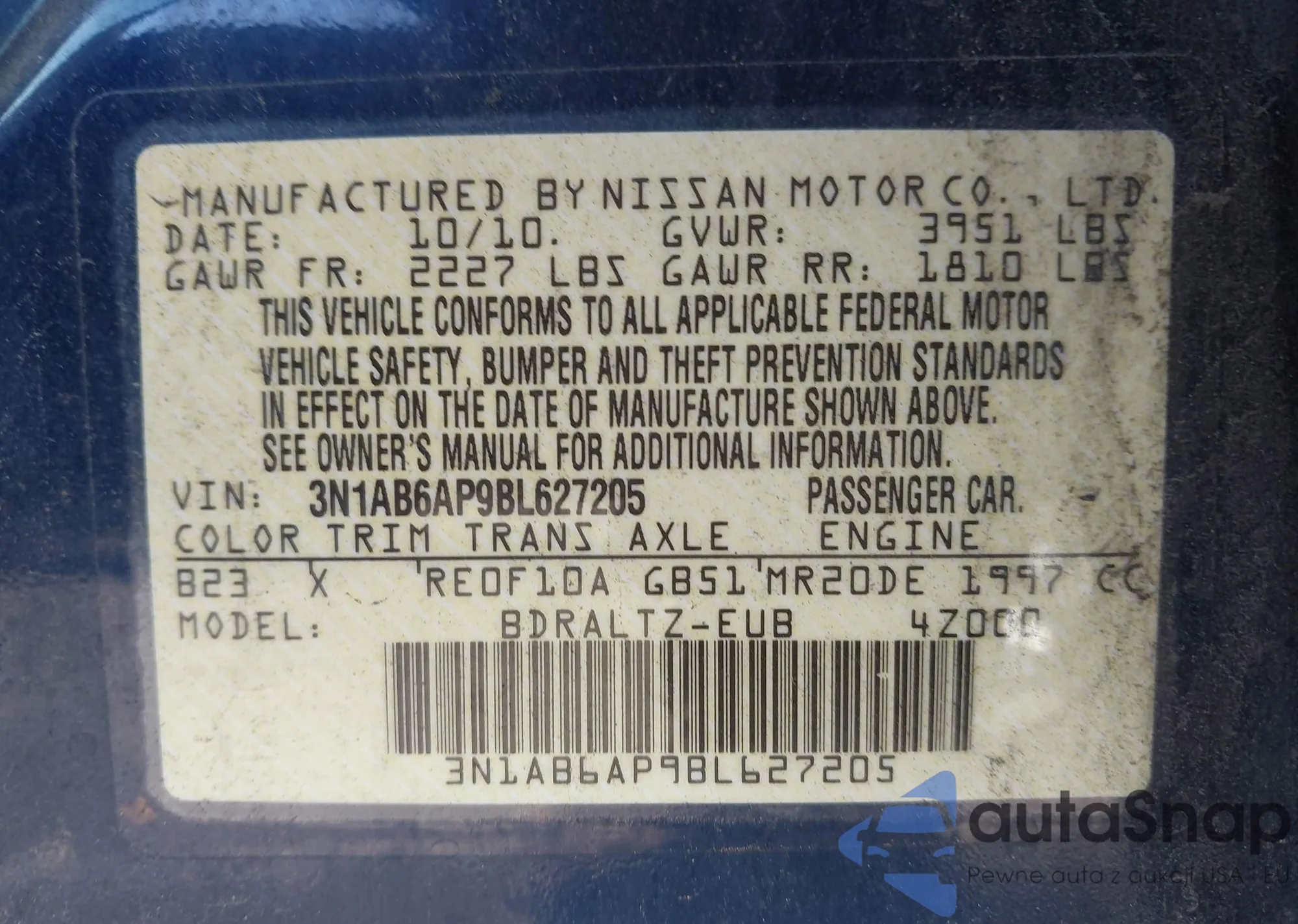 VIN: 3N1AB6AP9BL627205