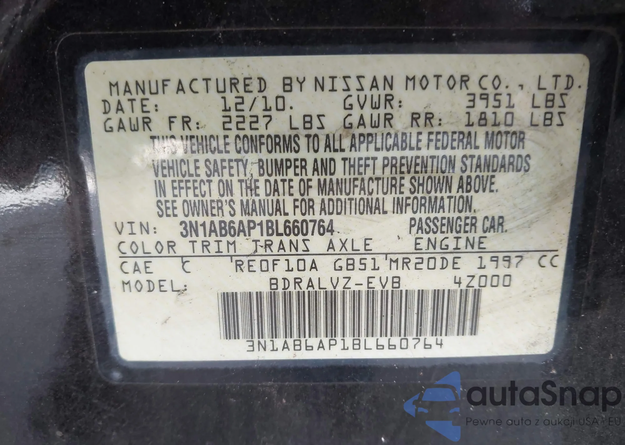 VIN: 3N1AB6AP1BL660764