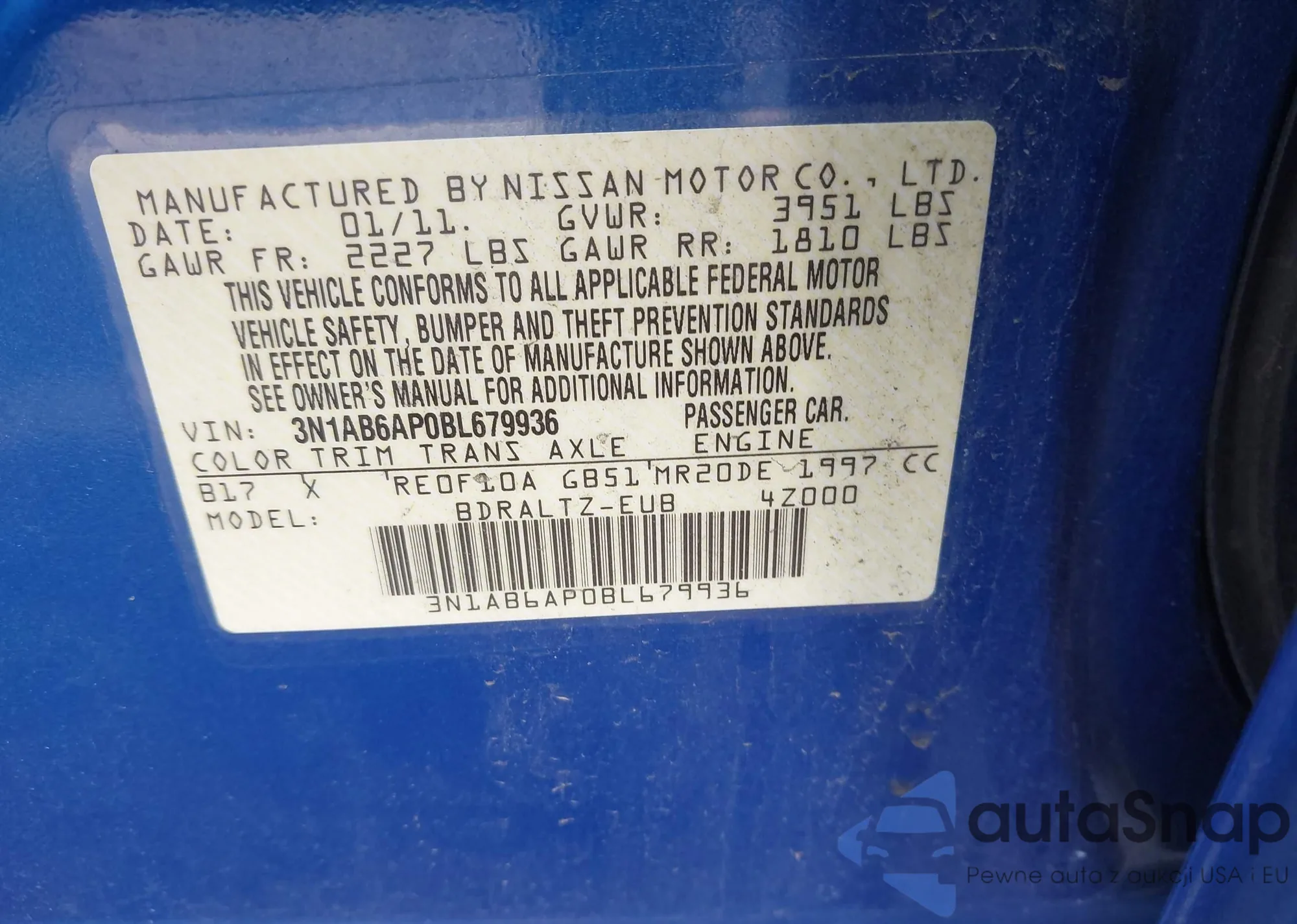 VIN: 3N1AB6AP0BL679936