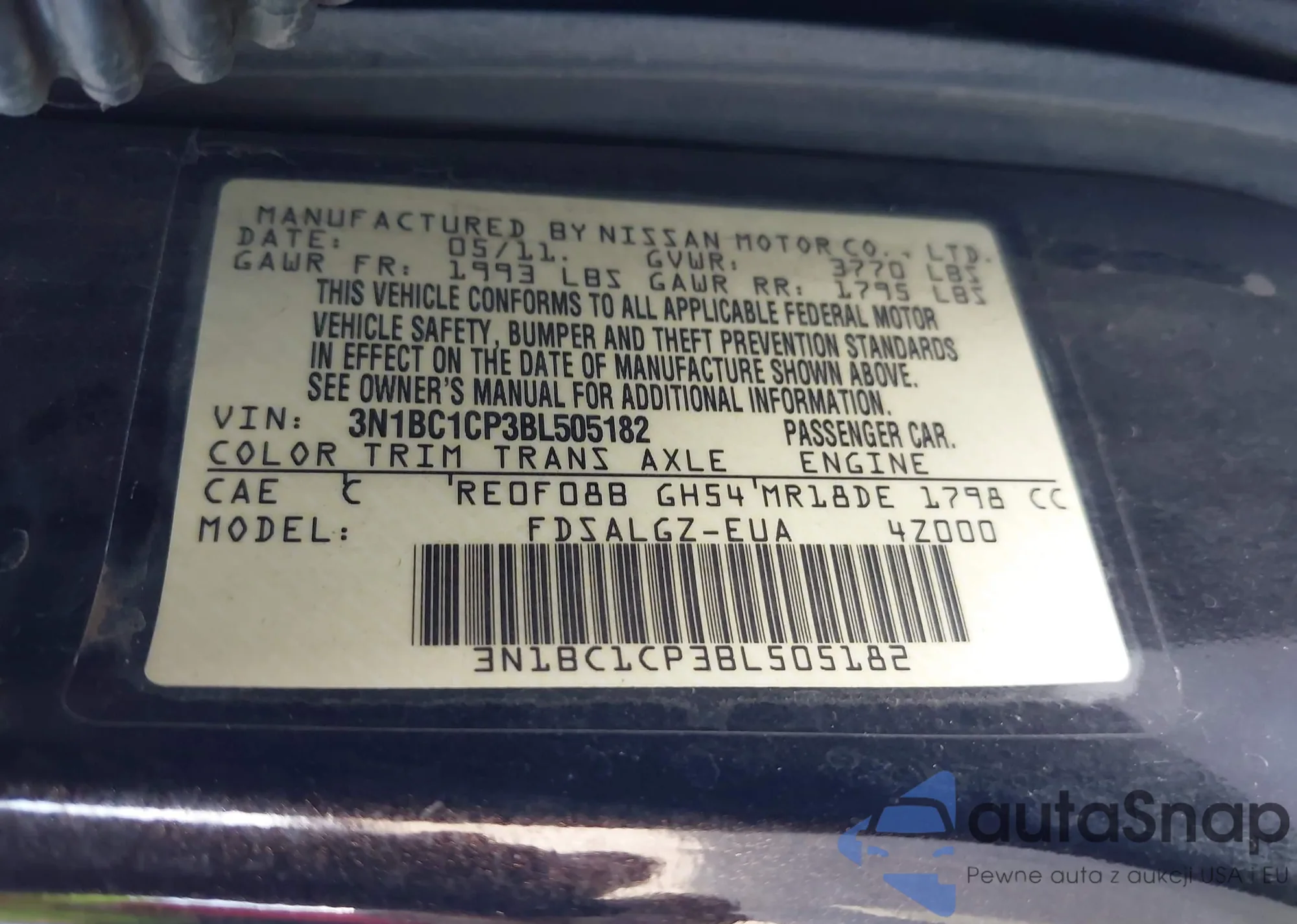 • VIN: 3N1BC1CP3BL505182