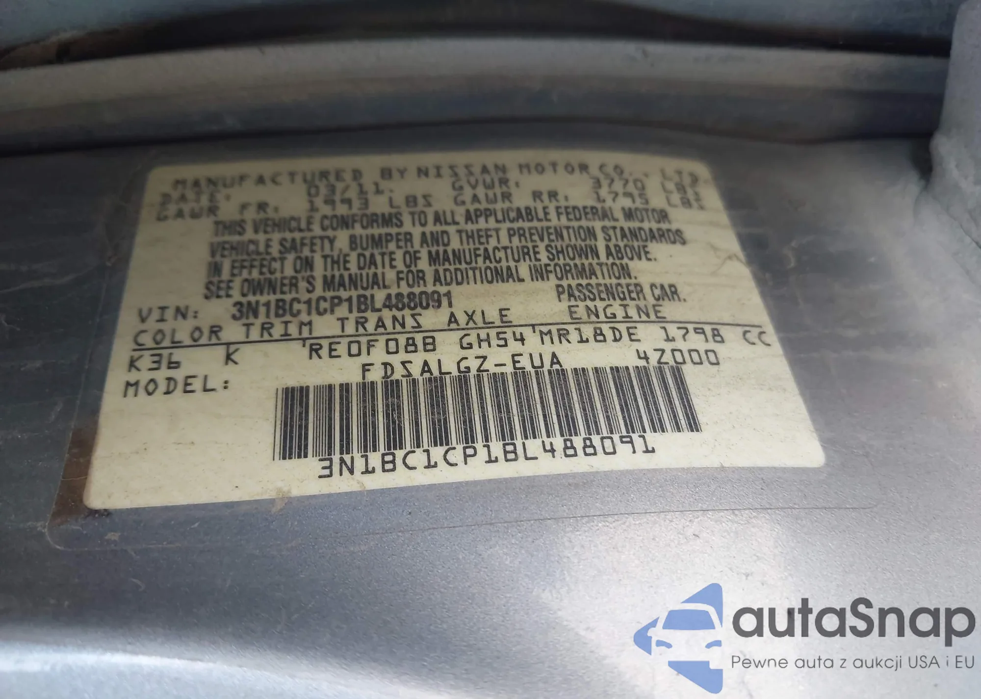 VIN: 3N1BC1CP1BL488091