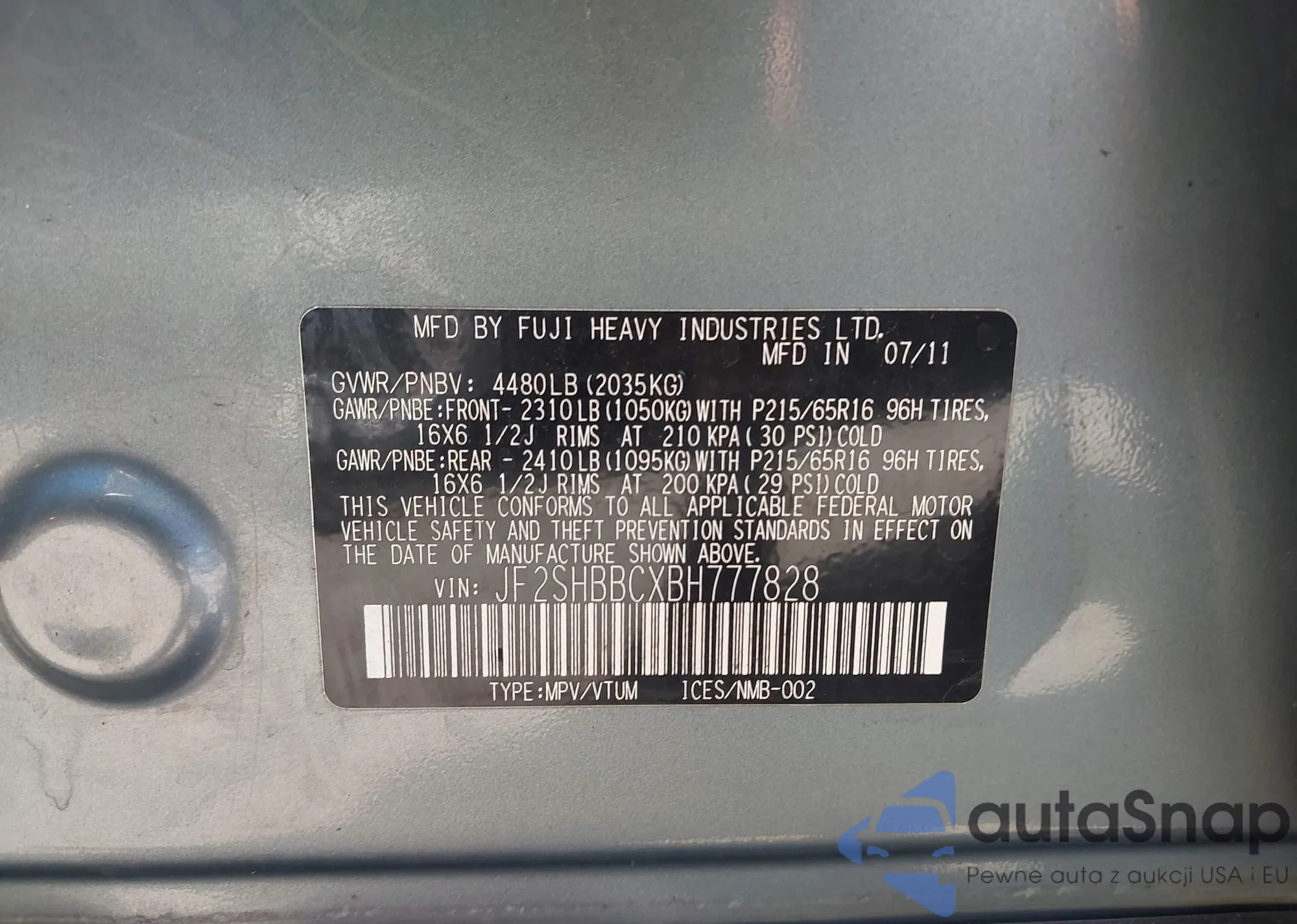 VIN: JF2SHBBCXBH777828