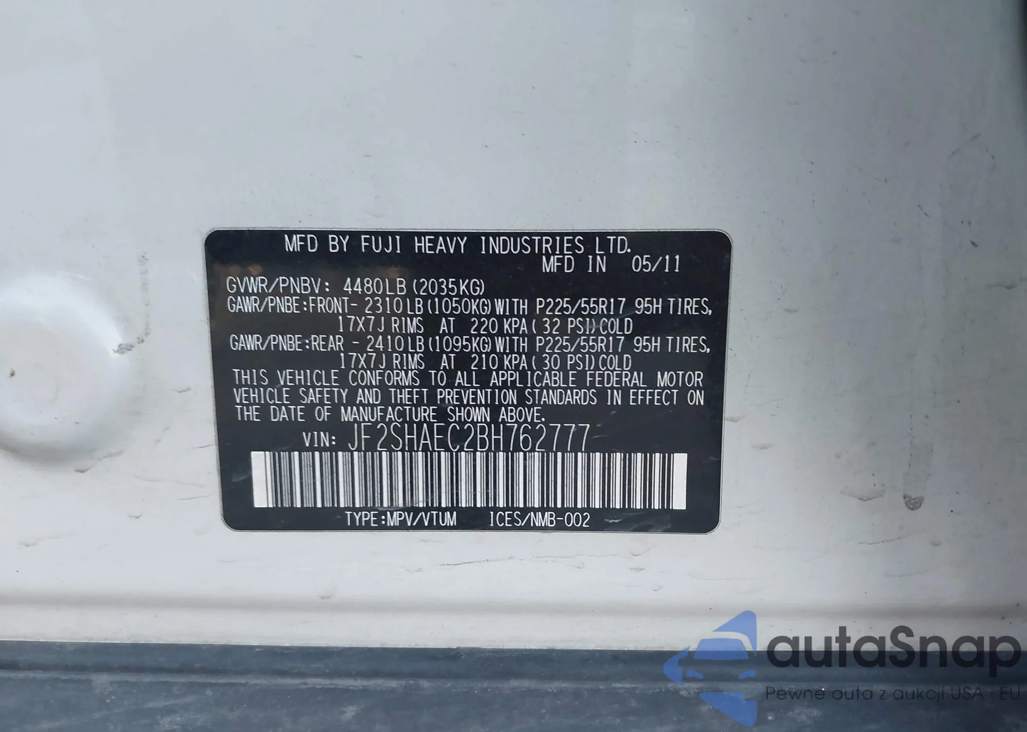 VIN: JF2SHAEC2BH762777