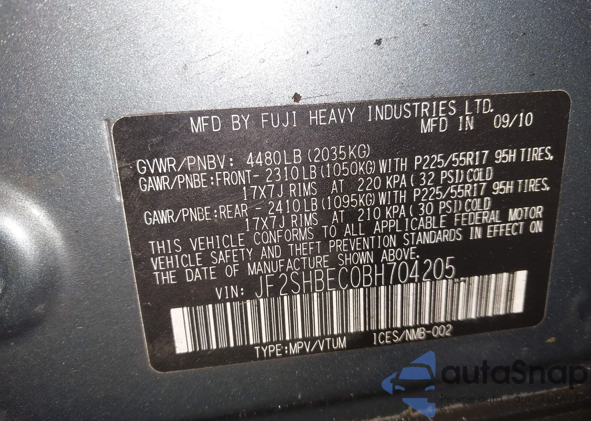 VIN: JF2SHBEC0BH704205