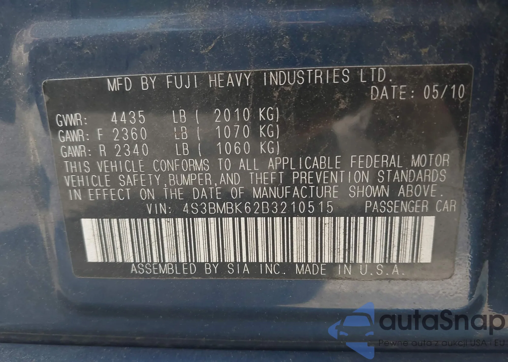 VIN: 4S3BMBK62B3210515