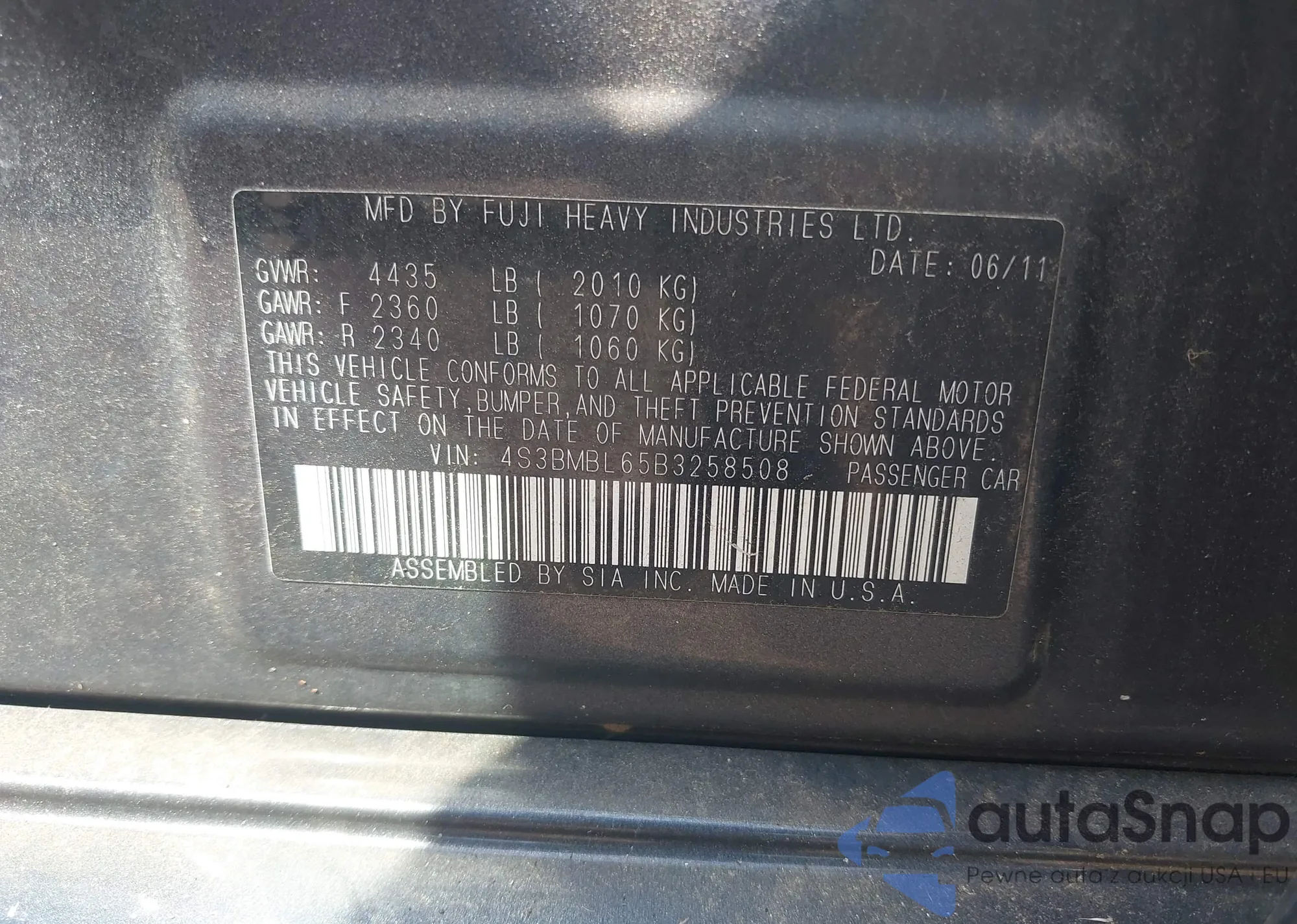 VIN: 4S3BMBL65B3258508