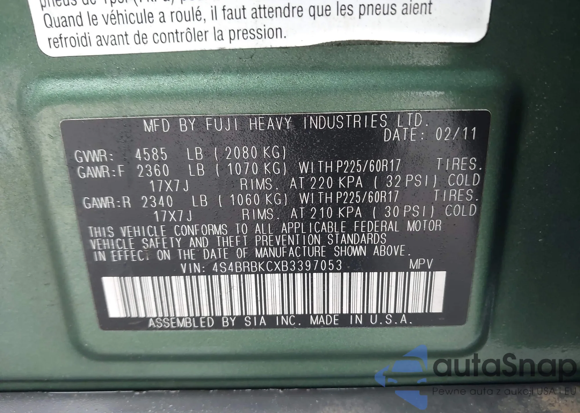 The car Subaru Outback 2011 (VIN 4S4BRBKCXB3397053) has not been auctioned before. The documents are clean, and the mileage matches or is below the market average. Sold by an insurance company – we recommend purchase. Delivery to the port will take approx. 6–8 weeks.