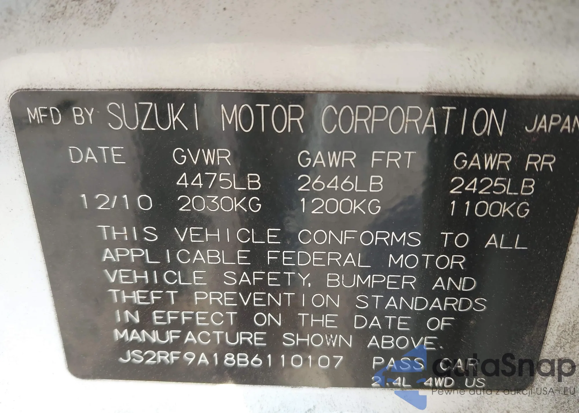 VIN: JS2RF9A18B6110107