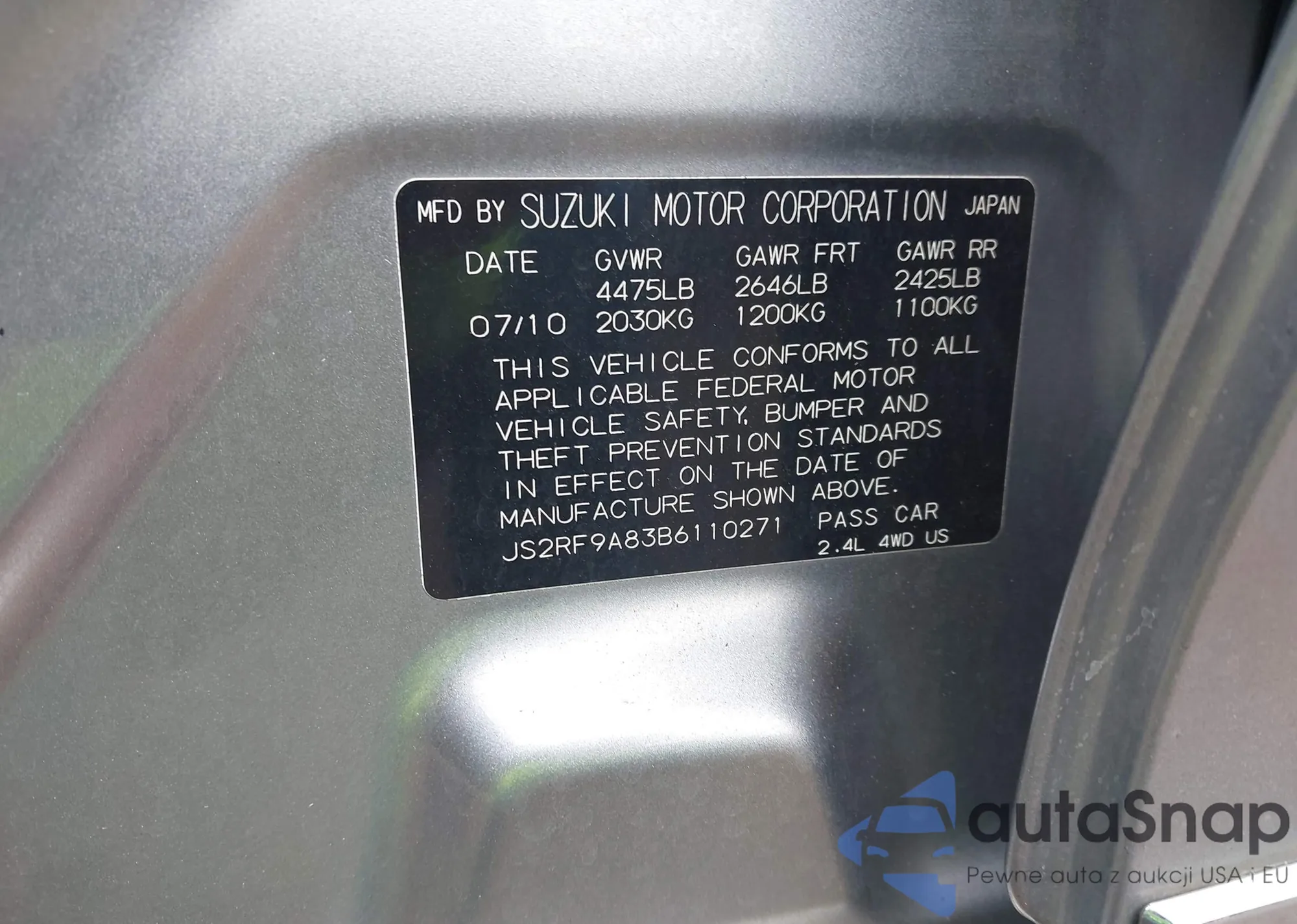VIN: JS2RF9A83B6110271