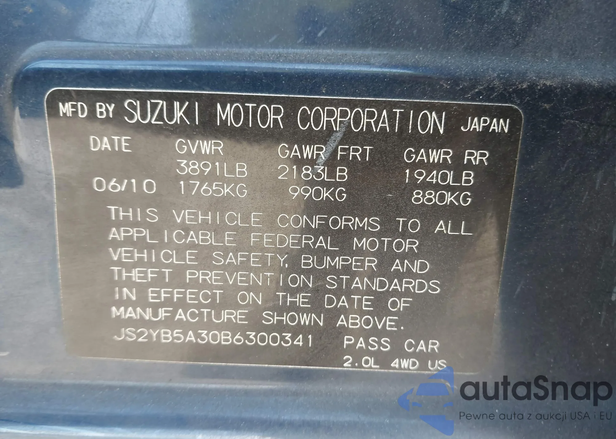 The car Suzuki SX4 2011 (VIN JS2YB5A30B6300341) has not been auctioned before. The documents are clean, and the mileage matches or is below the market average. Sold by an insurance company – we recommend purchase. Delivery to the port will take approx. 6–8 weeks.