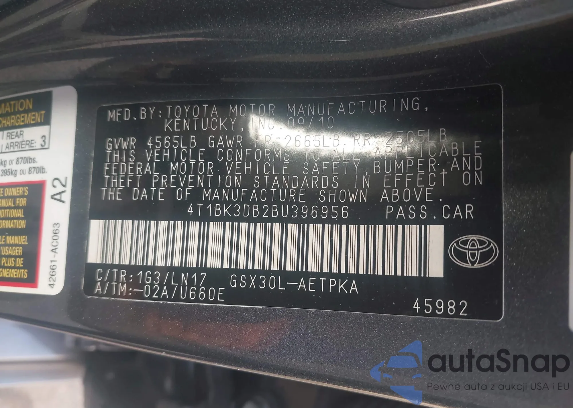 VIN: 4T1BK3DB2BU396956