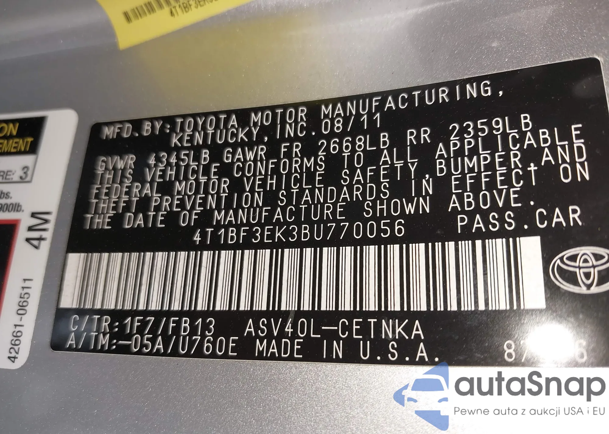 VIN: 4T1BF3EK3BU770056