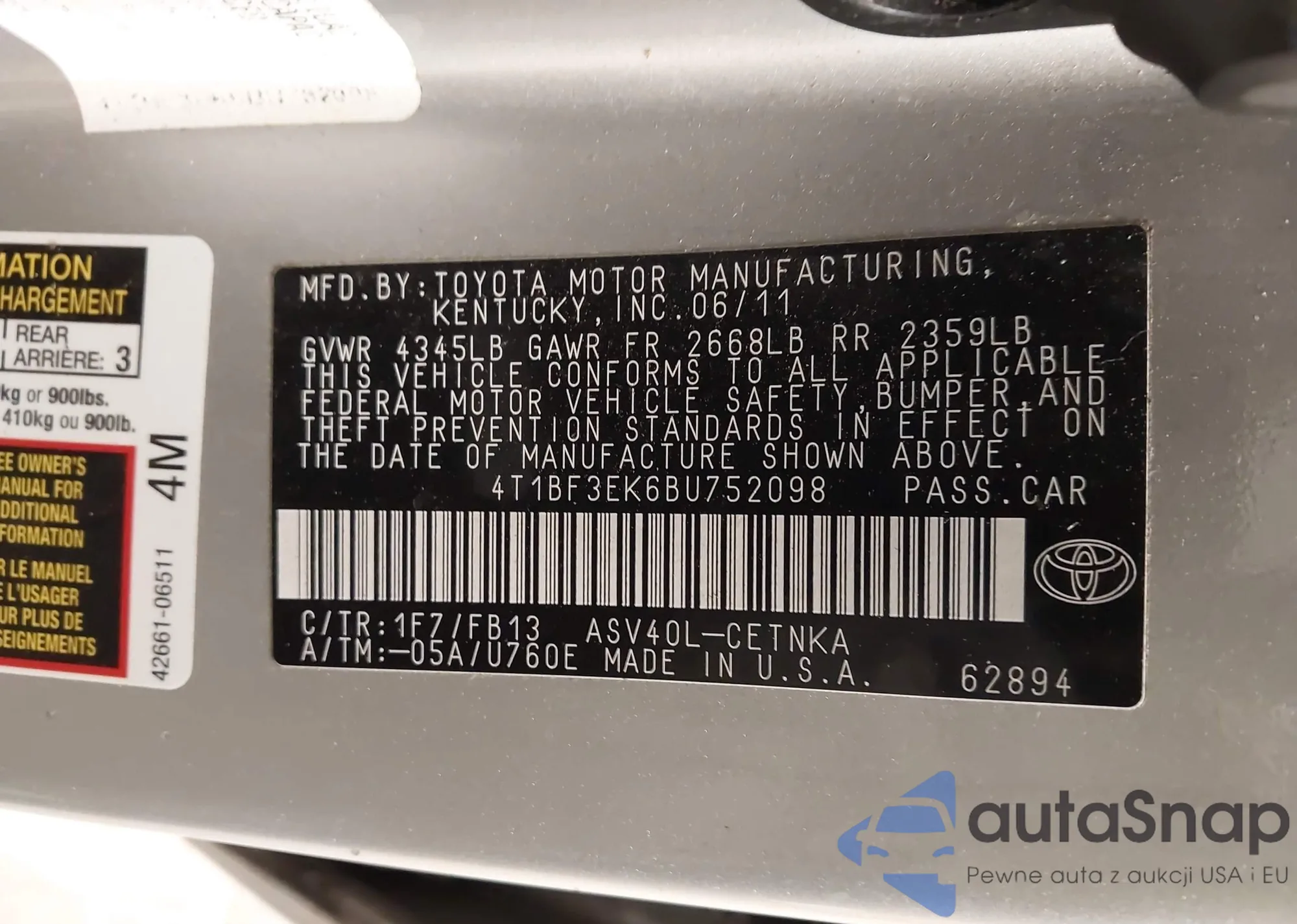 VIN: 4T1BF3EK6BU752098
