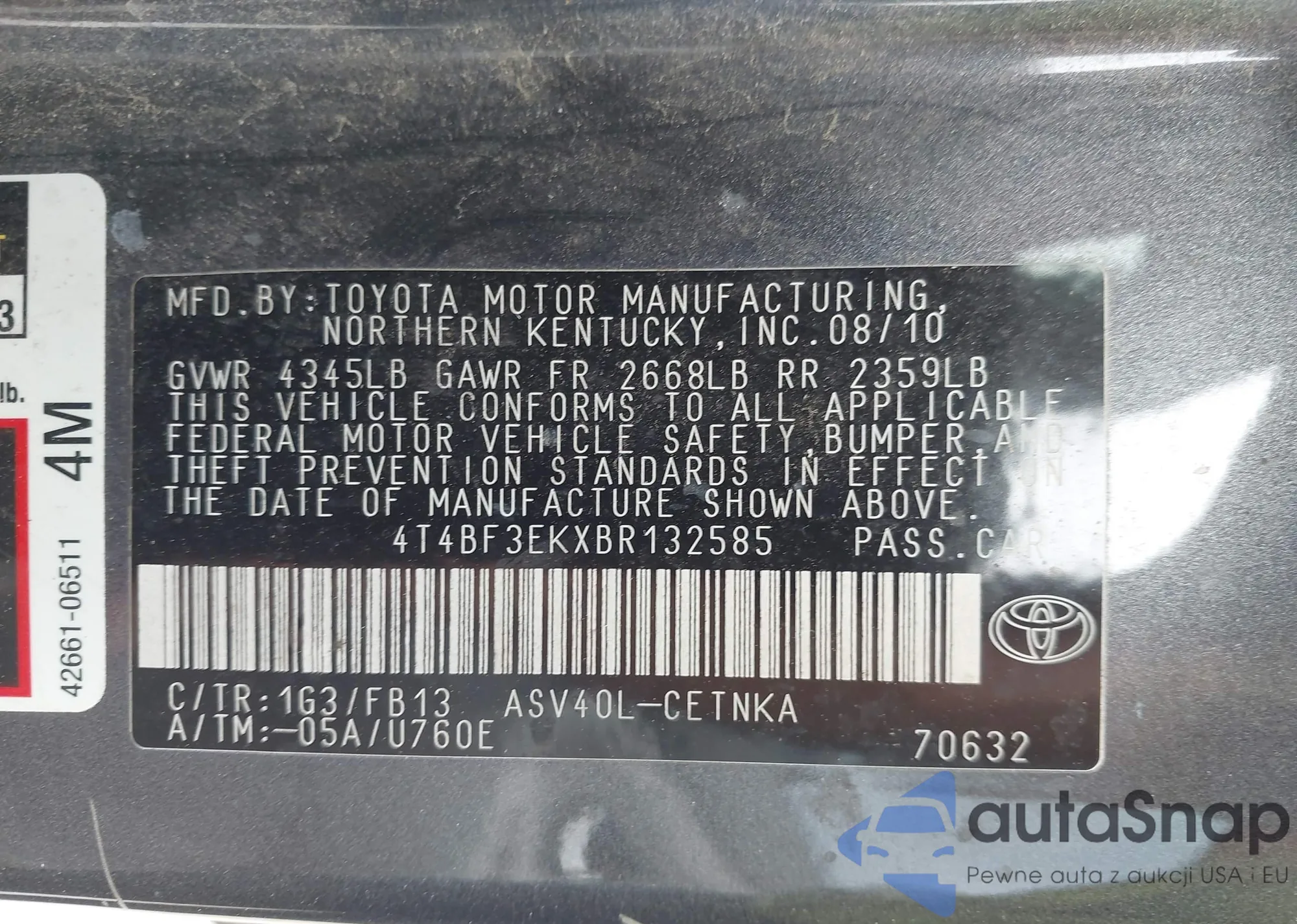 VIN: 4T4BF3EKXBR132585