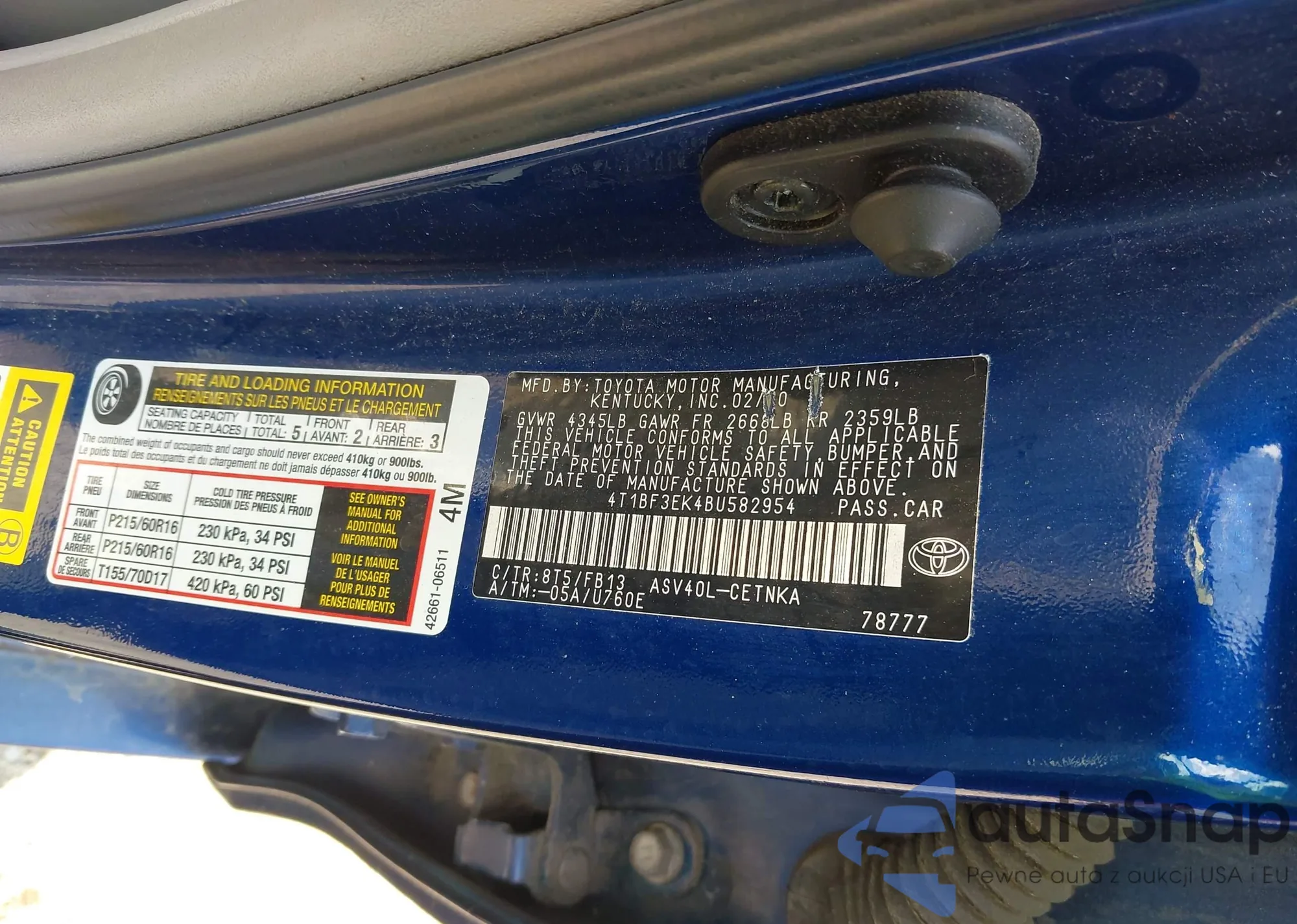 VIN: 4T1BF3EK4BU582954