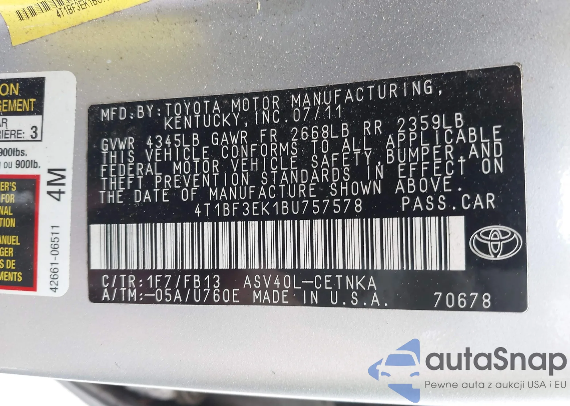 VIN: 4T1BF3EK1BU757578