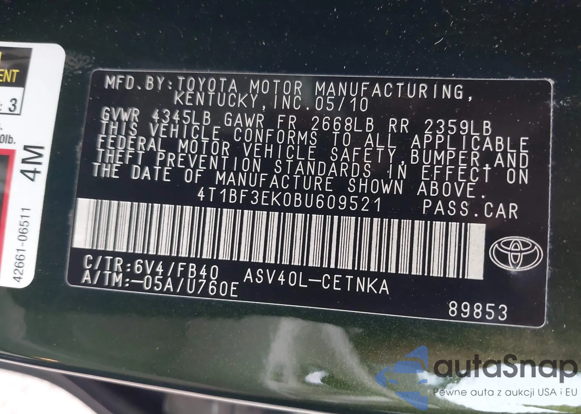 VIN: 4T1BF3EK0BU609521