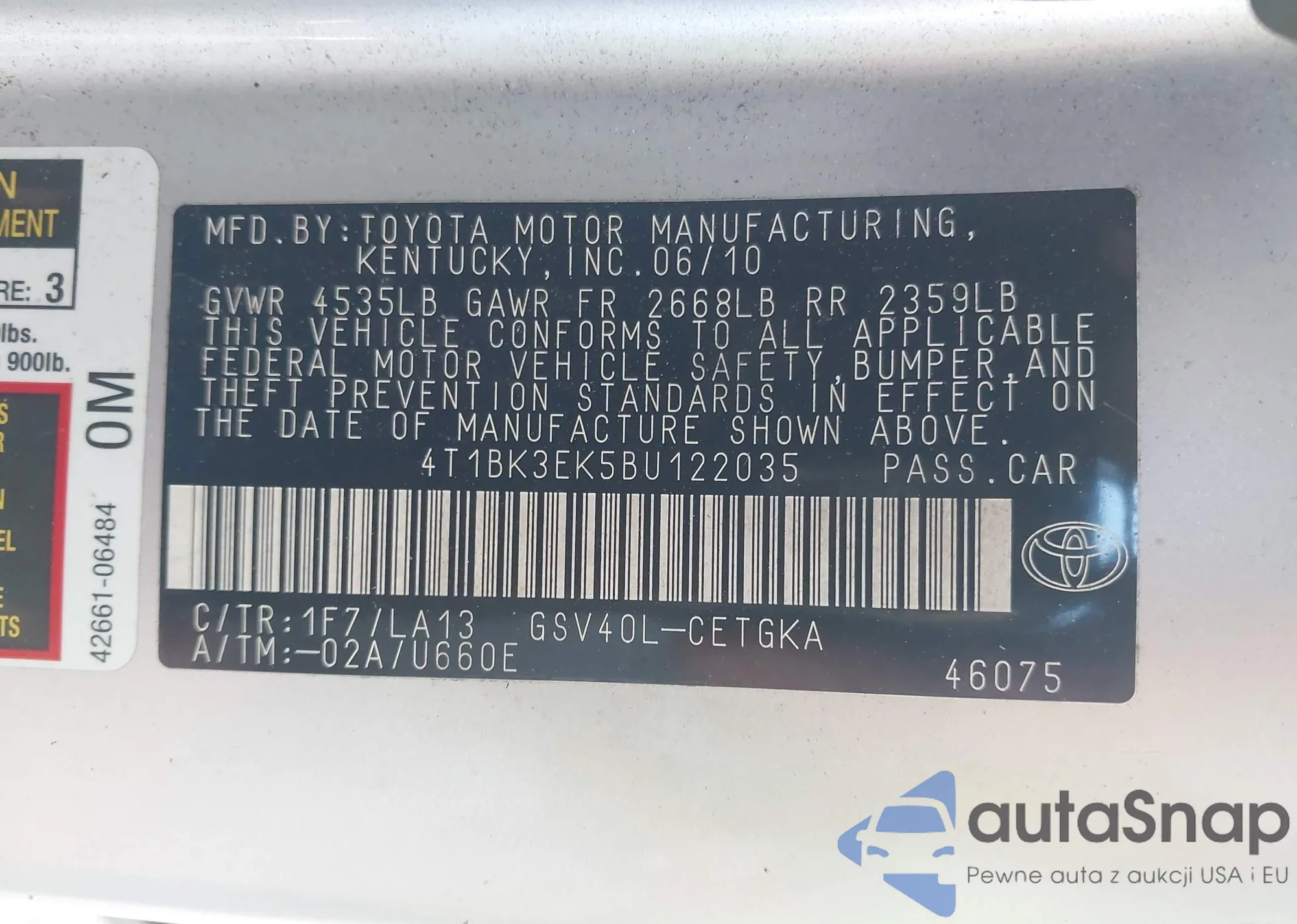 VIN: 4T1BK3EK5BU122035